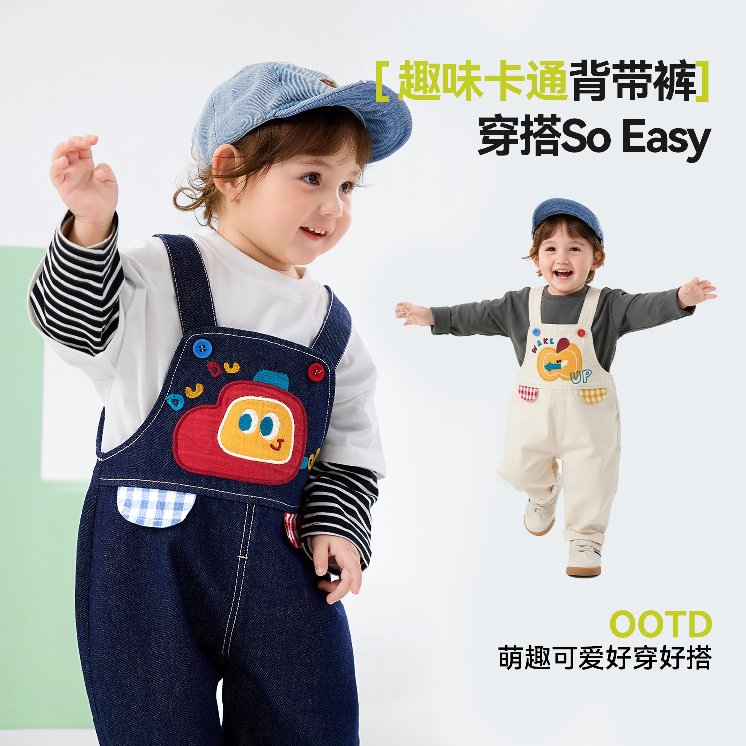 嘟嘟家儿童背带裤卡通春季男童裤子潮宝宝牛仔裤洋气女童可爱童装