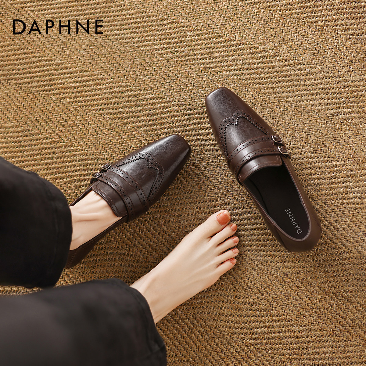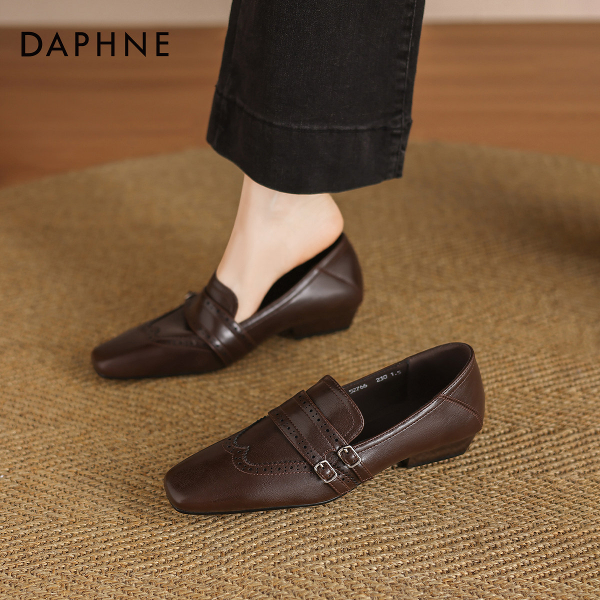 达芙妮春季乐福鞋女2026新款平底英伦风单鞋老钱风粗跟方头小皮鞋
