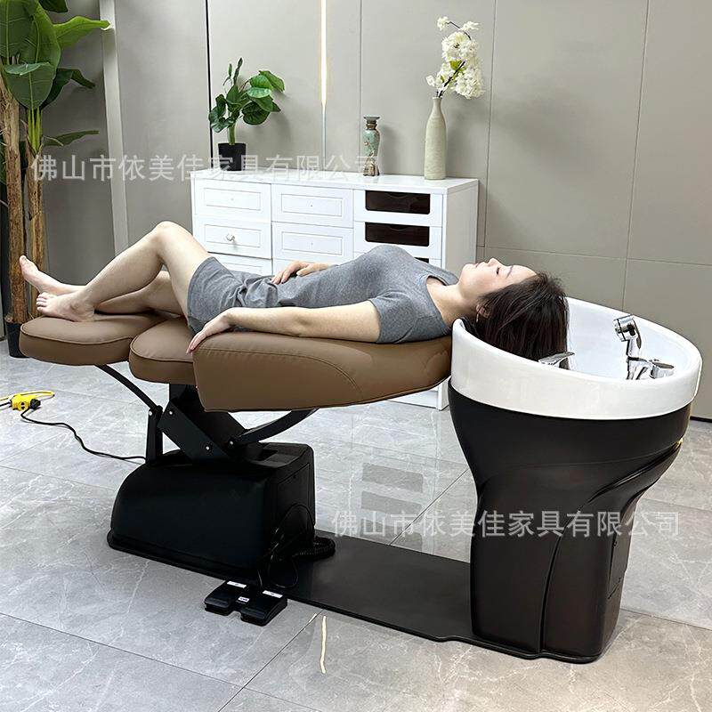 豪华电动洗头床按摩冲水床上下调节座椅半躺平躺陶瓷头疗床带脚控