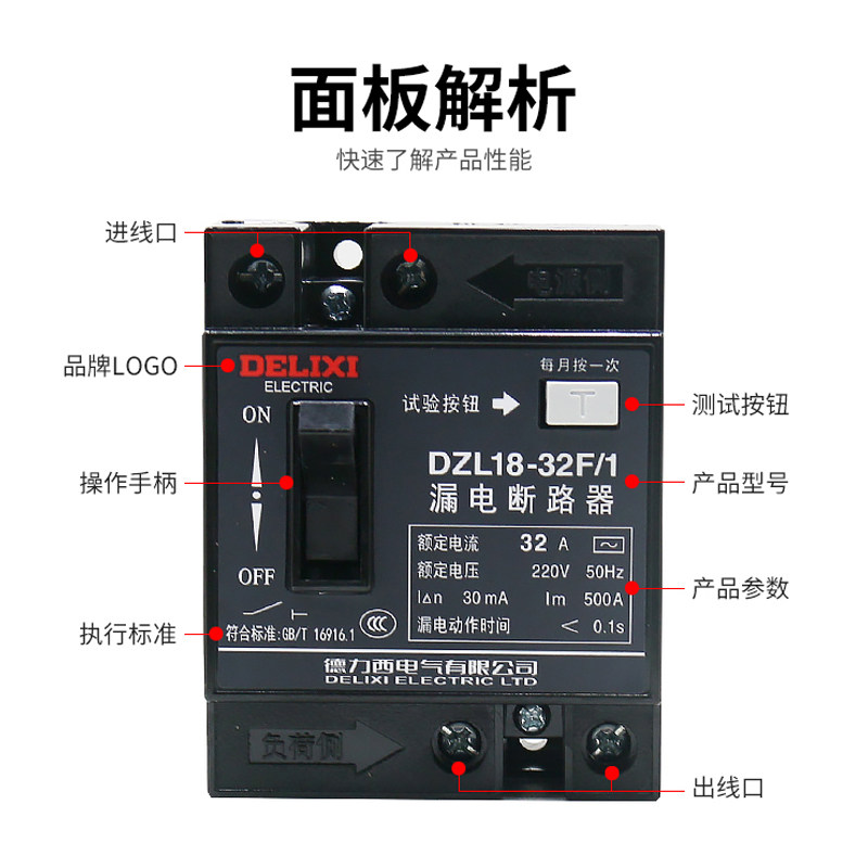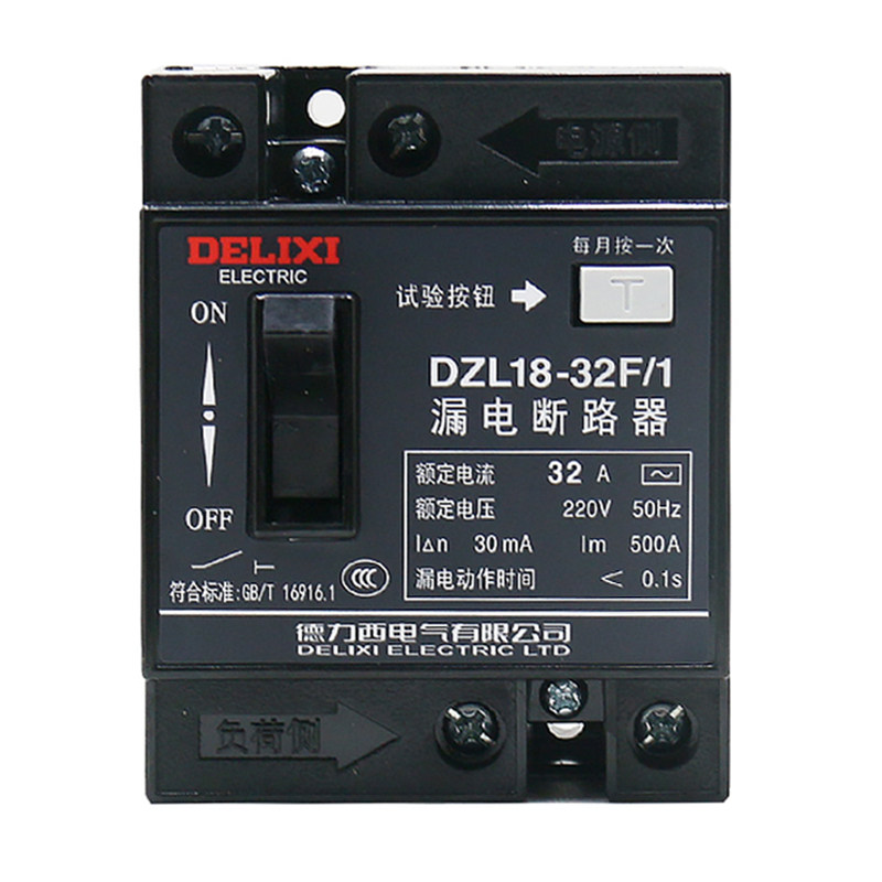 德力西电气DZL18-32F/1塑壳漏电保护断路器32A漏保20A2P老款220V