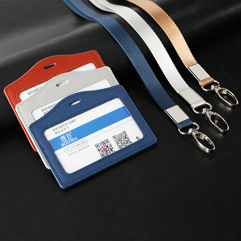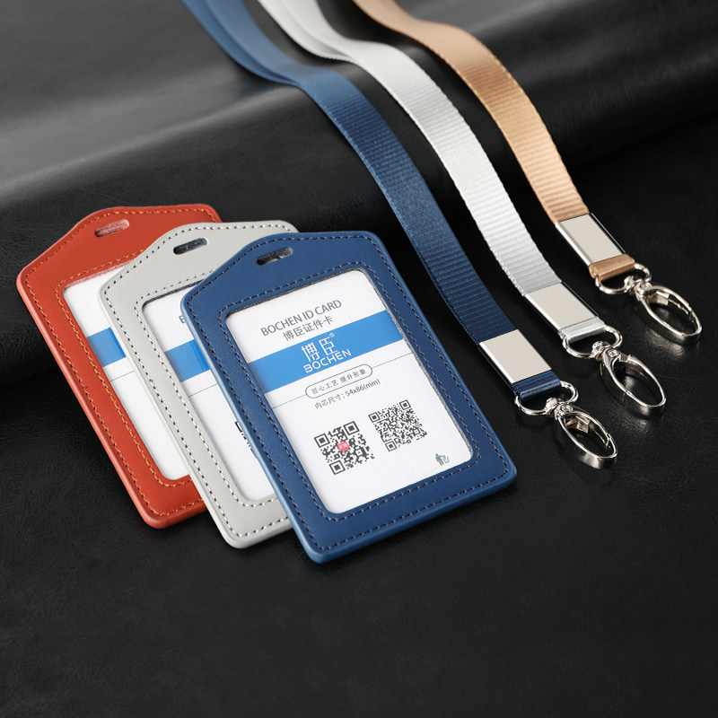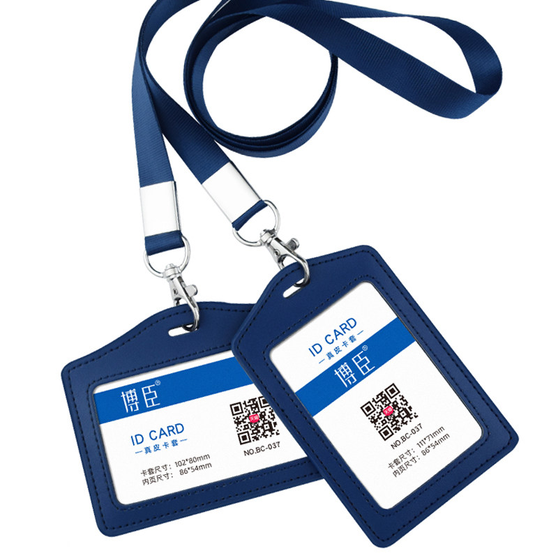 单面显示高级感真皮透明工牌卡套校牌工作证套卡片套公交卡门禁吊牌小卡厂牌套蓝色员工胸卡带定制挂绳logo