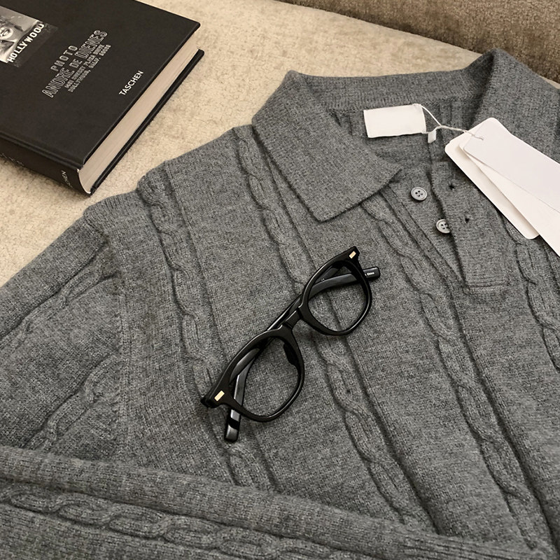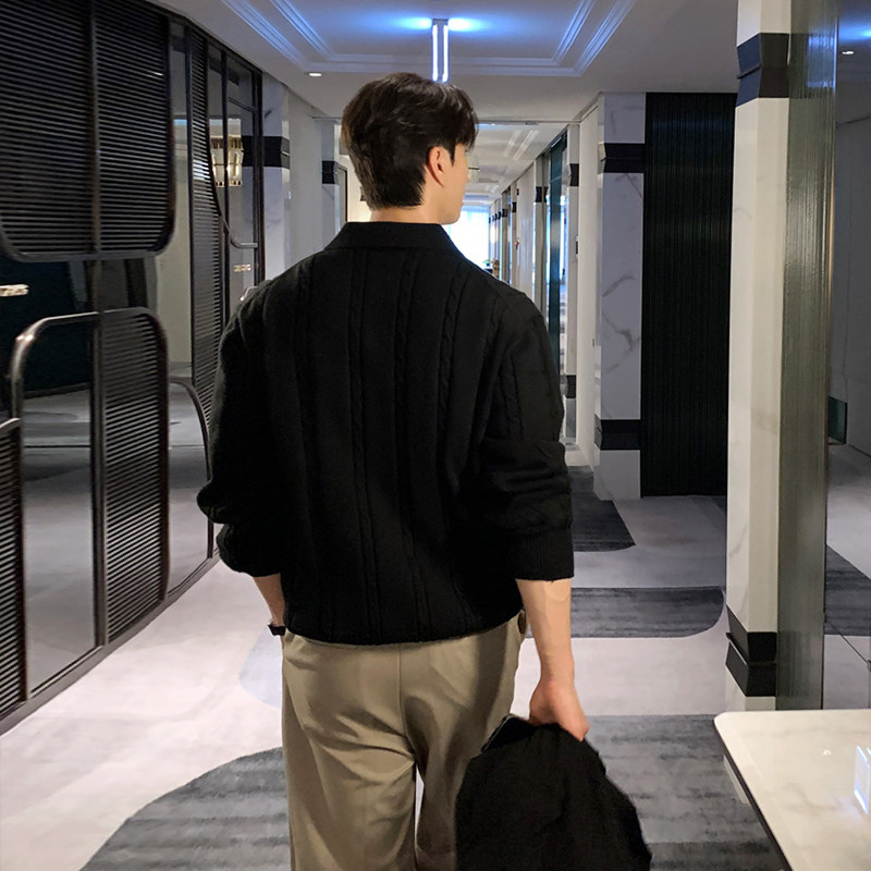 碧舍冬季保暖翻领上衣韩版帅气高级感精工麻花纹套头毛衣宽松加厚