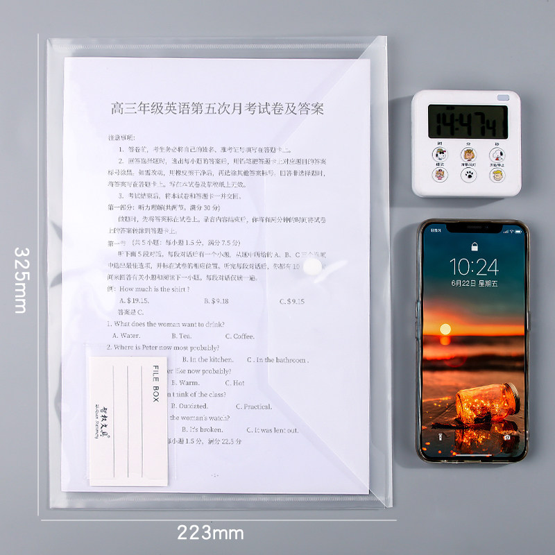 A4文件袋透明加厚大容量按扣考研试卷收纳袋学生用档案资料袋文件夹包文具商务办公用品批发
