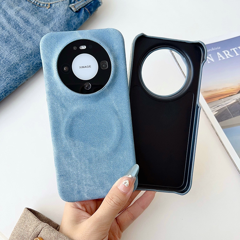 复古牛仔布纹磁吸适用华为mate80pro手机壳新款小众耐脏mate70air磨砂防滑半包防摔硬壳