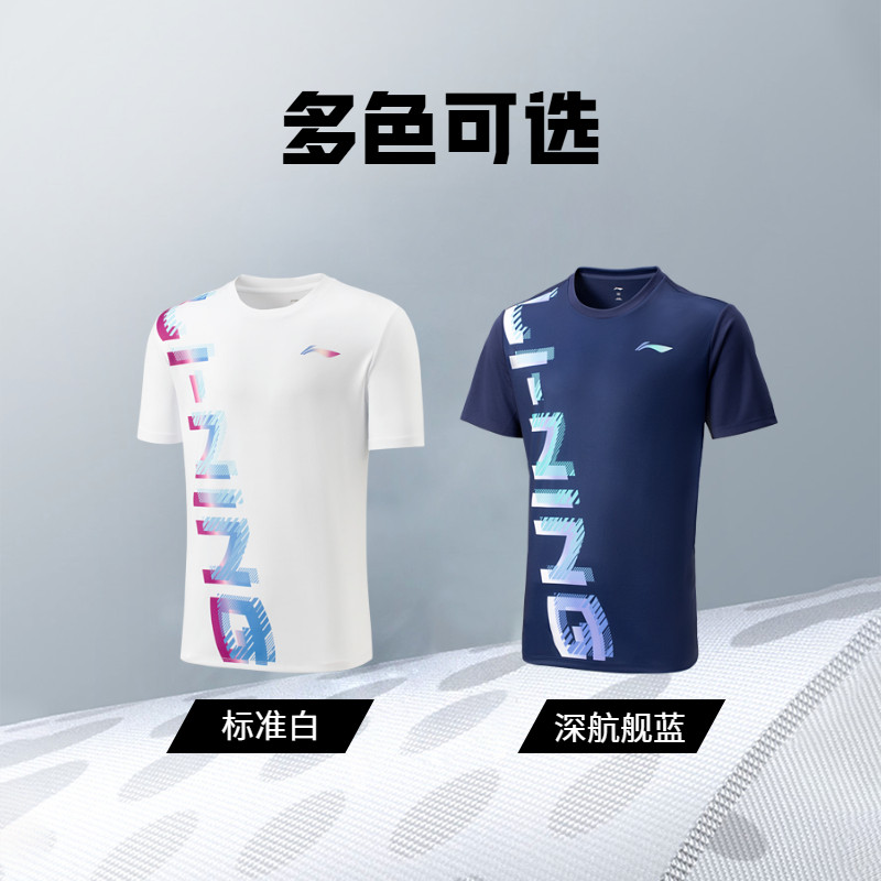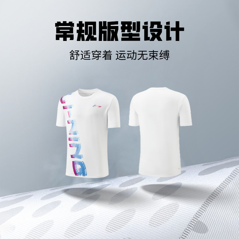 李宁短袖T恤男士女士羽毛球系列情侣圆领上衣休闲针织舒适运动服