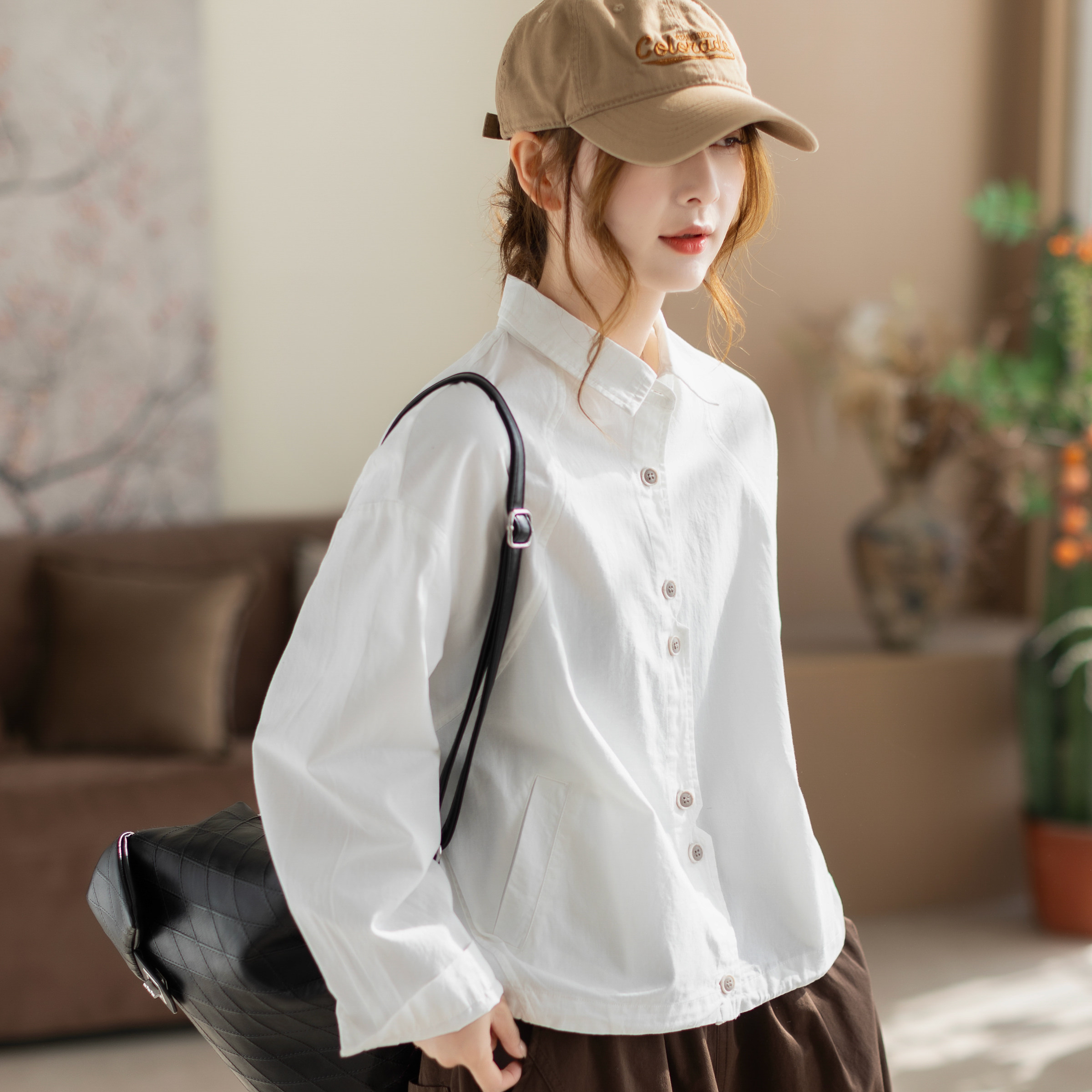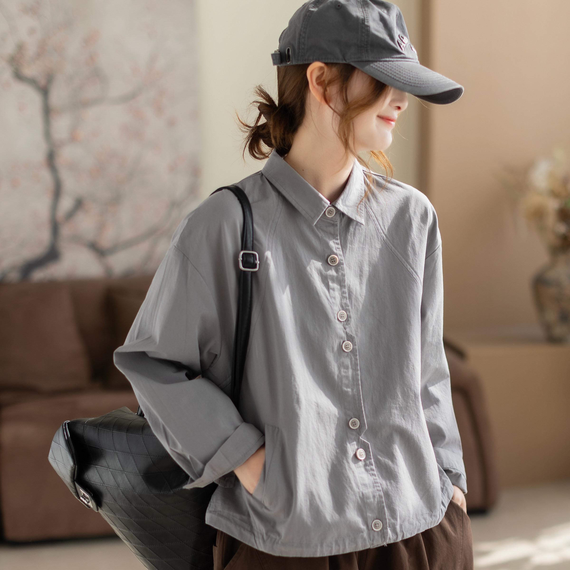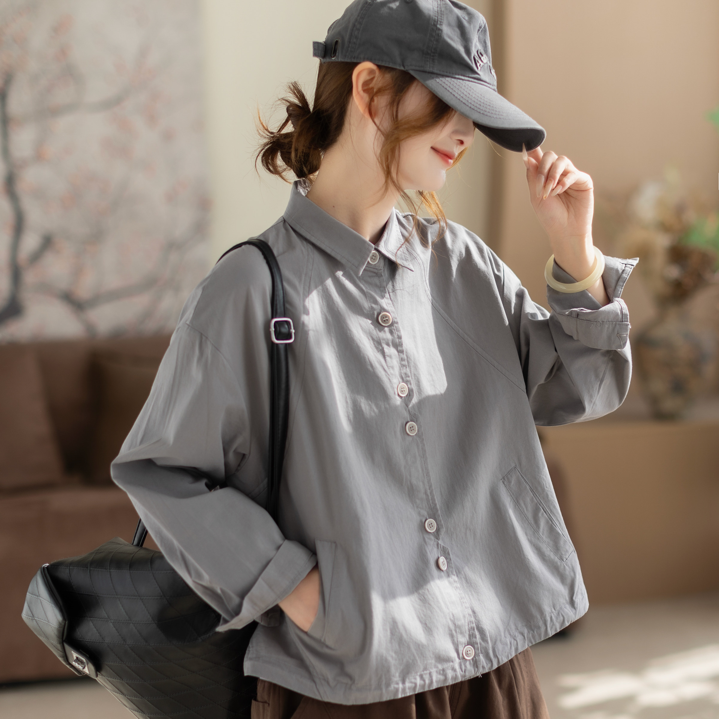 咖咪羽100%棉衬衫外套女全棉女士纯色开衫百搭流行气质女装衬衣