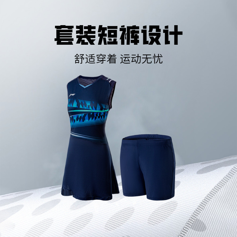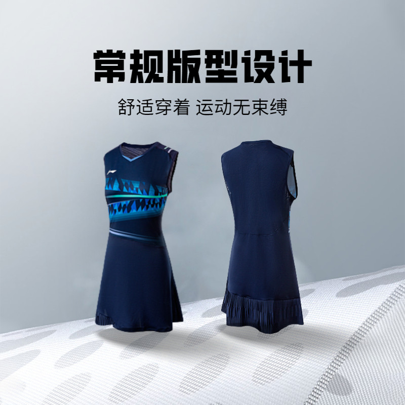 李宁连衣裙女士新款羽毛球系列女装防走光裤子环保针织休闲运动裙