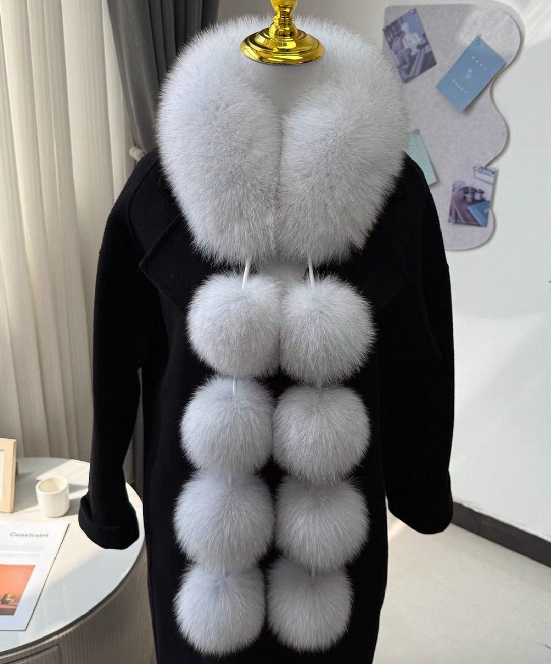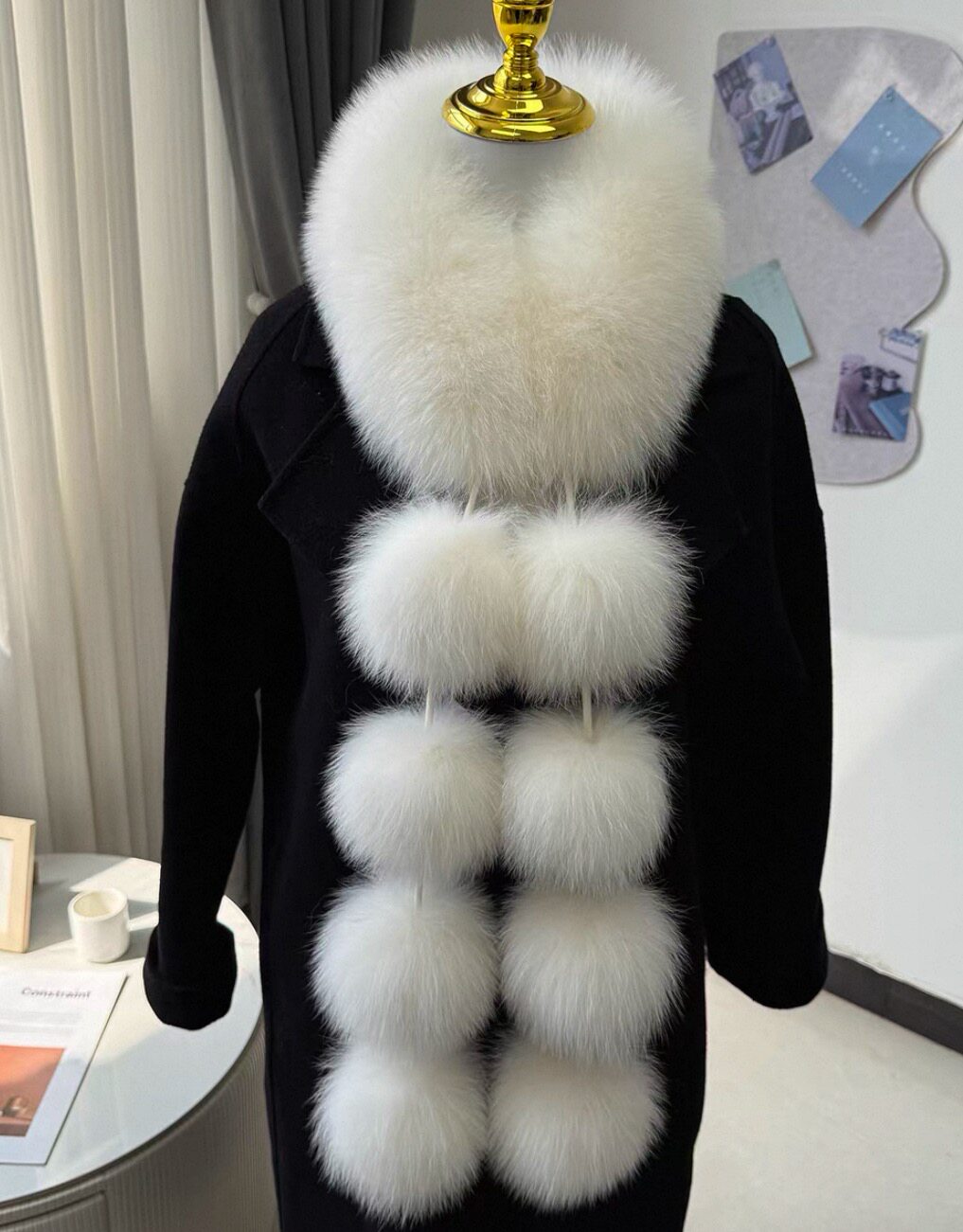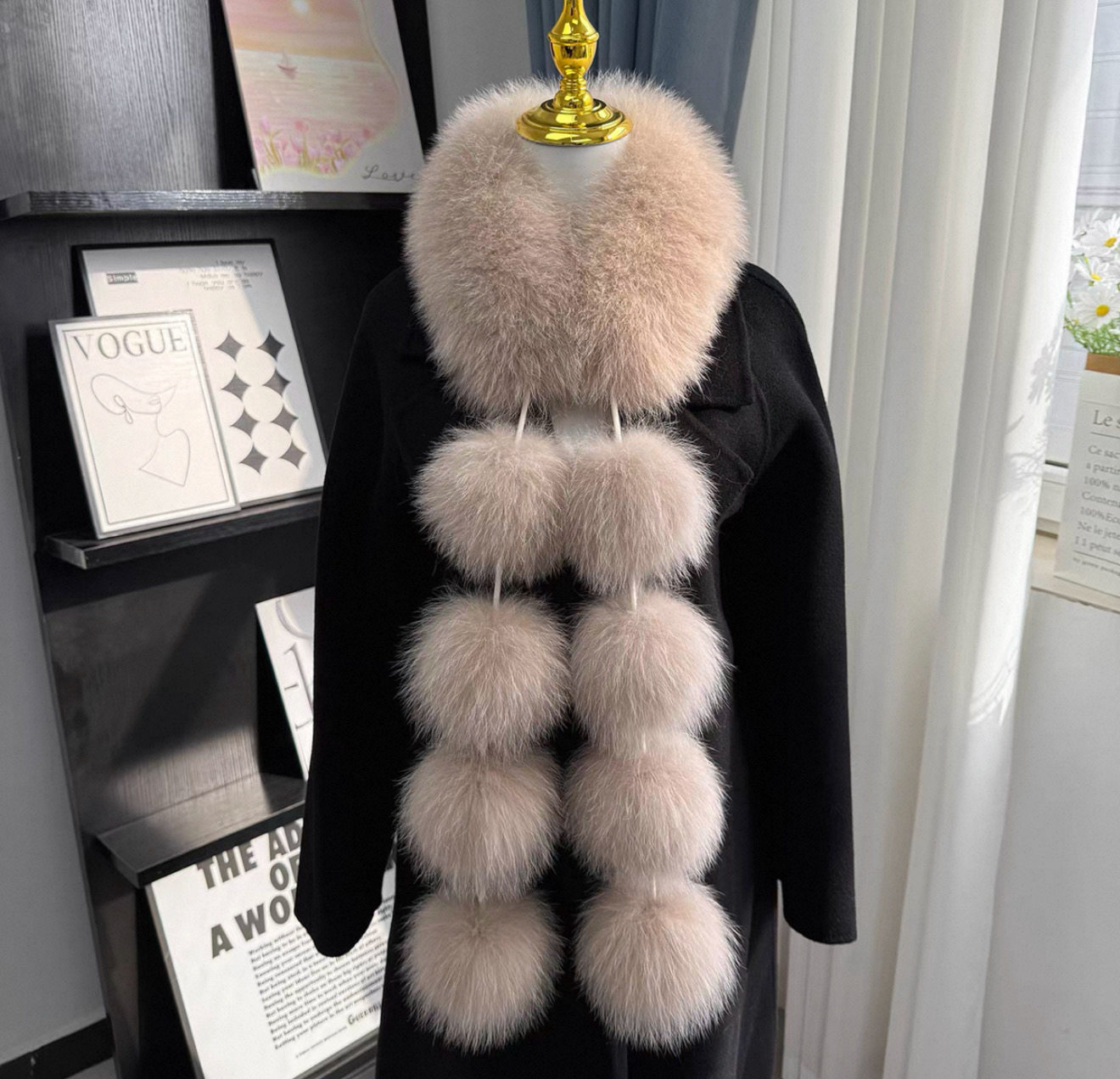 真毛狐狸毛围脖女冬季走秀新款时尚高级感皮草毛领毛毛围巾毛球款