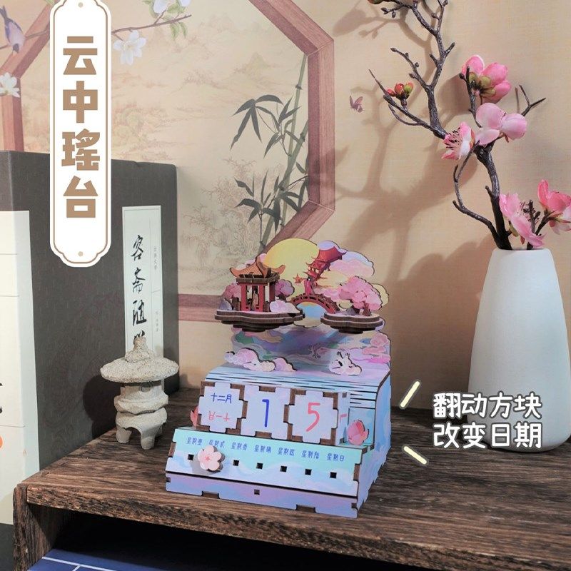 万年历云中瑶台木质翻转方块拼图日历桌面摆件DIY积木模型礼物女