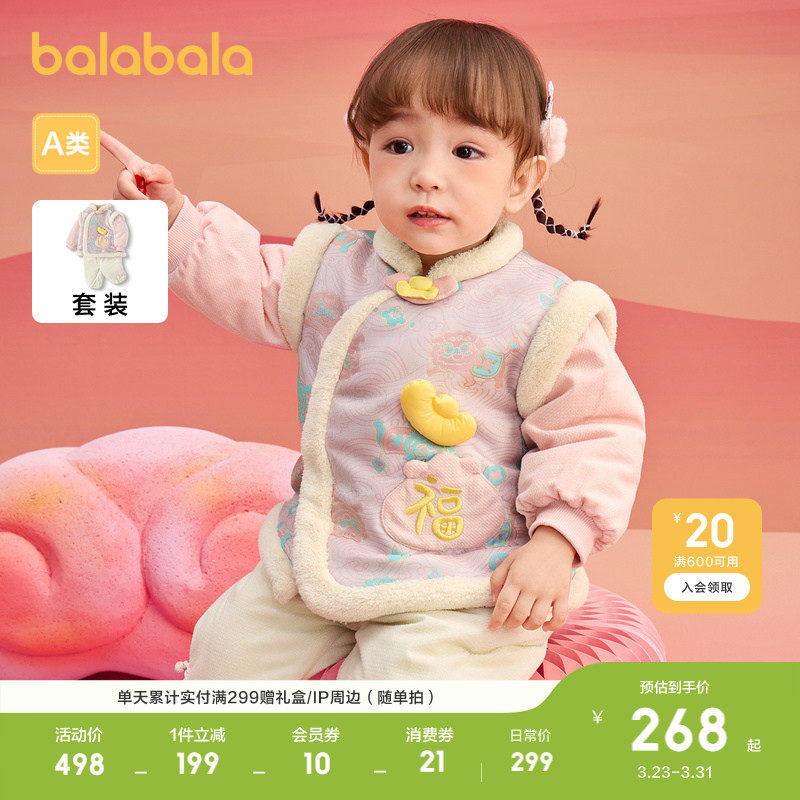 巴拉巴拉童装儿童衣服宝宝套装婴儿周岁礼服2026两件套红色拜年服