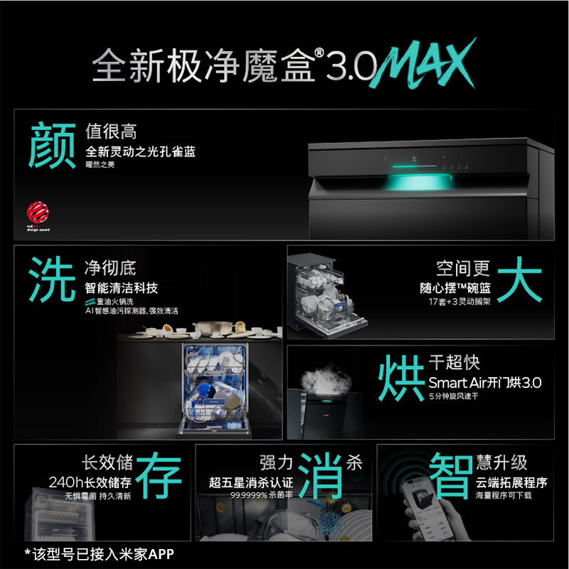 新品|西门子极净魔盒3.0MAX独立嵌入式洗碗机17+3套黑白色EB99