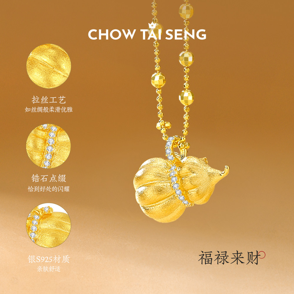 周大生福禄来财项链S925纯银葫芦本命年锁骨链国风生日礼物送女友