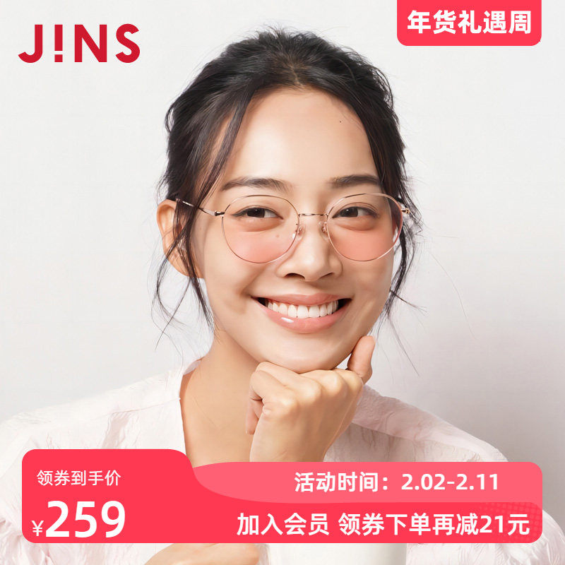 JINS睛姿清新甜美腮红眼镜平光镜金属框配腮红美颜镜片LMF22S147