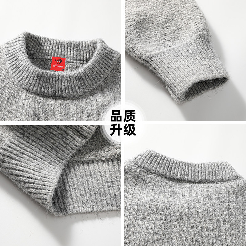 红蜻蜓男士圆领毛衣加绒加厚秋冬新款休闲保暖爸爸冬装针织打底衫