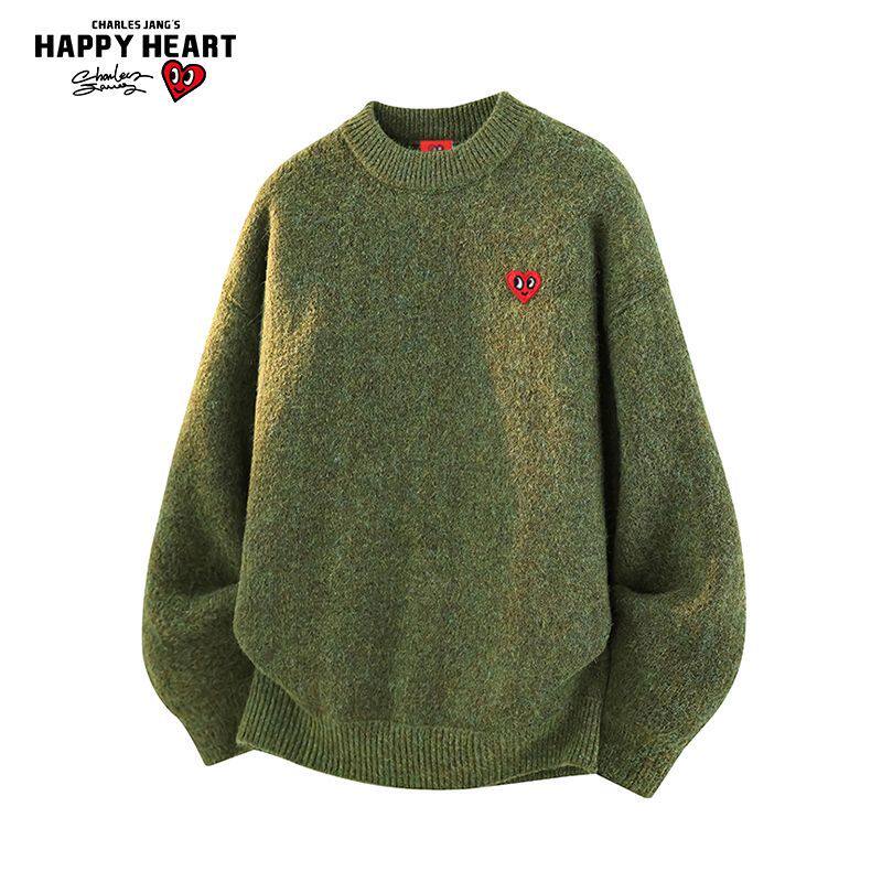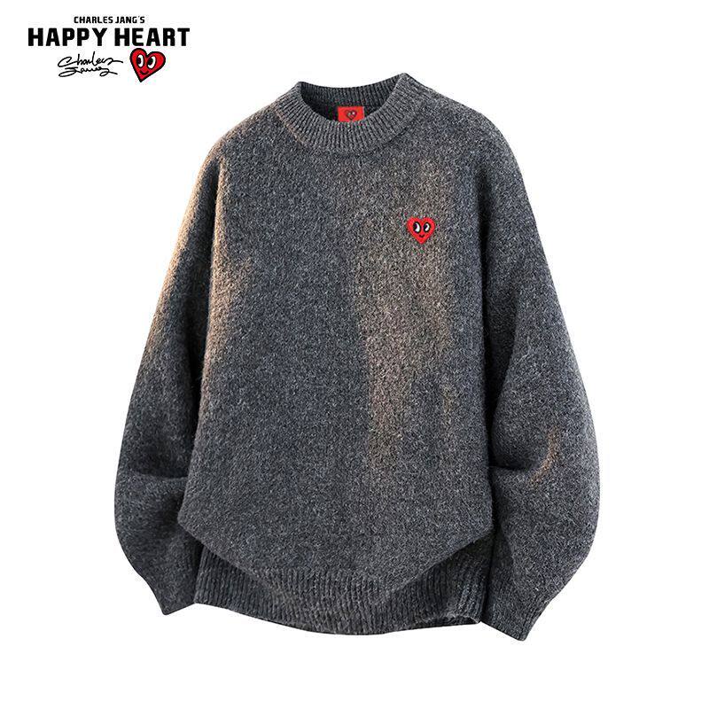 查尔斯桃心红色毛衣男女冬季新款宽松休闲百