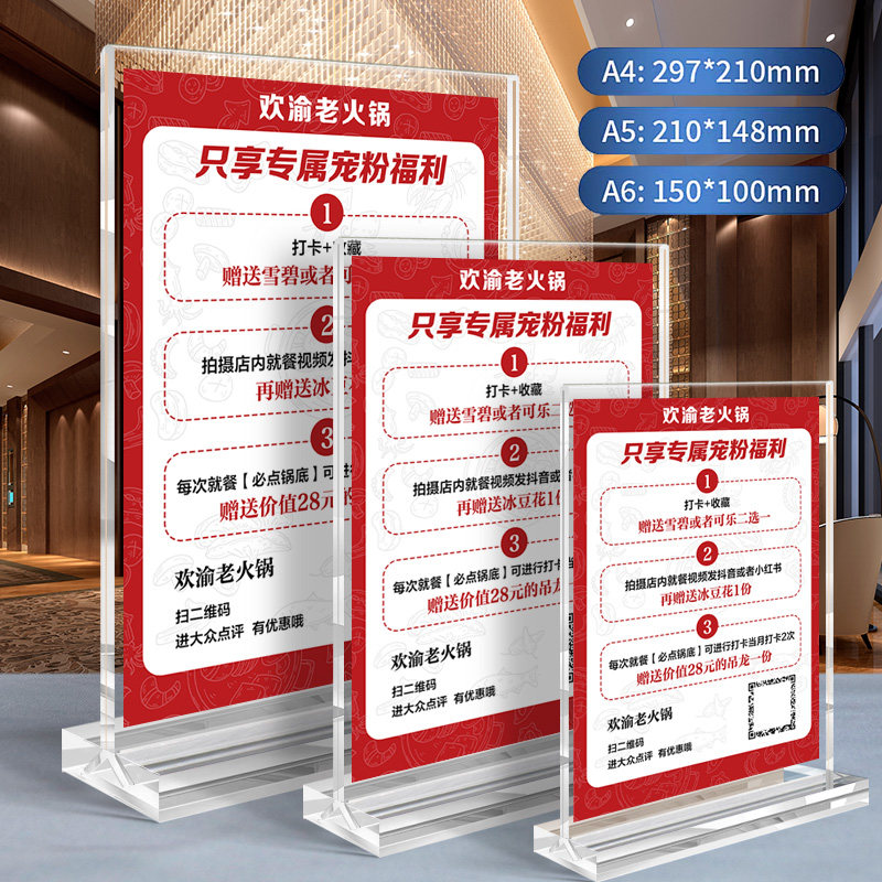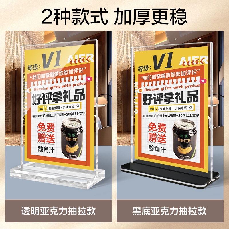 大众点评展示牌 收藏打卡立牌亚克力牌牌台牌点餐牌透明小立牌桌上点餐桌面台卡菜单桌牌菜牌a5会员充值定制