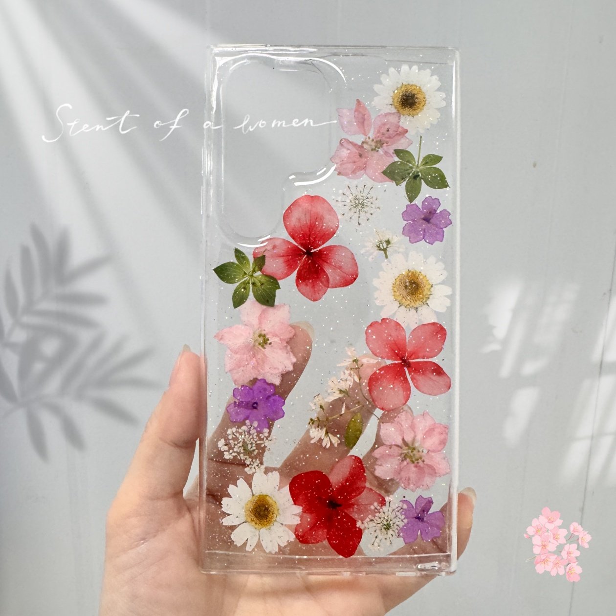 小清新真花手机壳适用苹果17 16保护套iPhone15真花三星S25ultar滴胶zflip6折叠屏屏软壳zfold5少女心保护壳