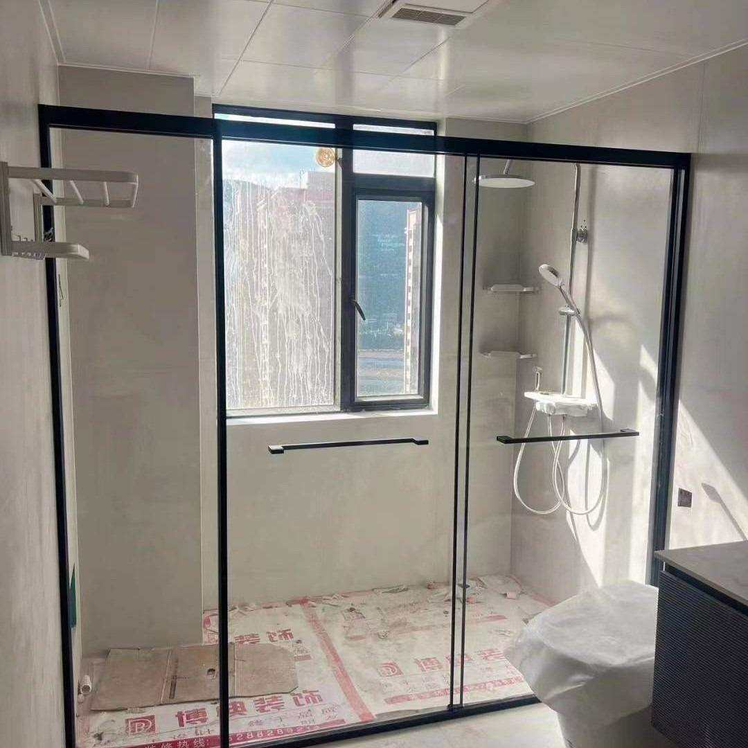 淋浴房一字型整体卫生间干湿分离浴屏玻璃移门隔断推拉门