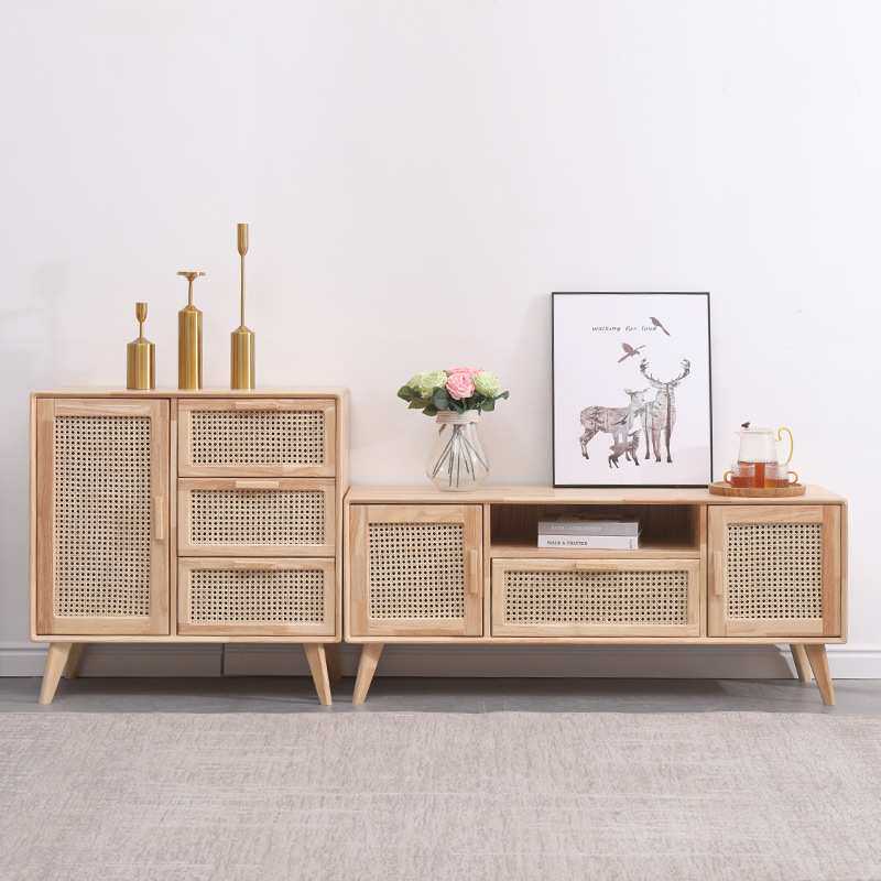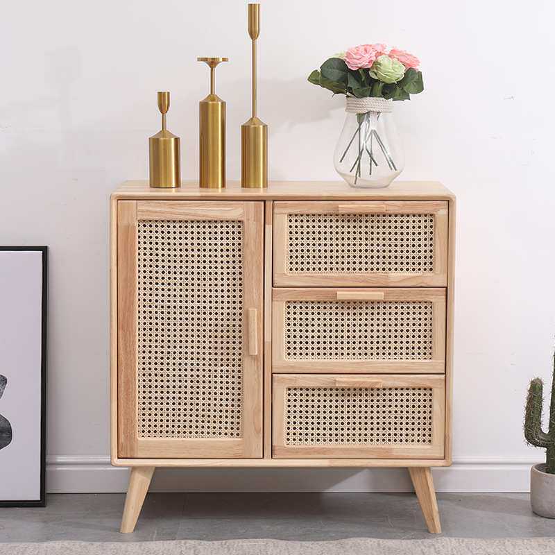五斗柜实木北欧客厅小户型日式原木藤编电视柜旁边柜收纳柜储物柜