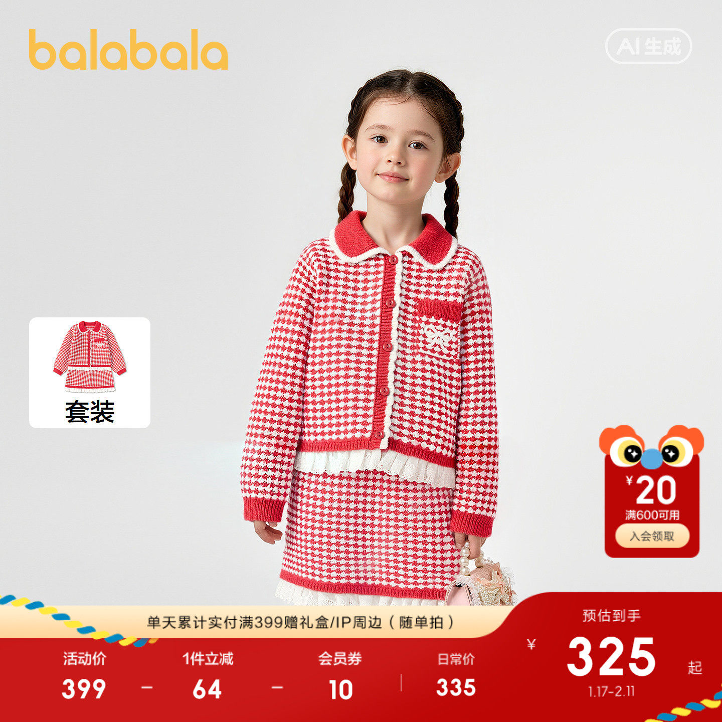 【商场同款】巴拉巴拉童装套装女童2026年新款春秋装新红色拜年服