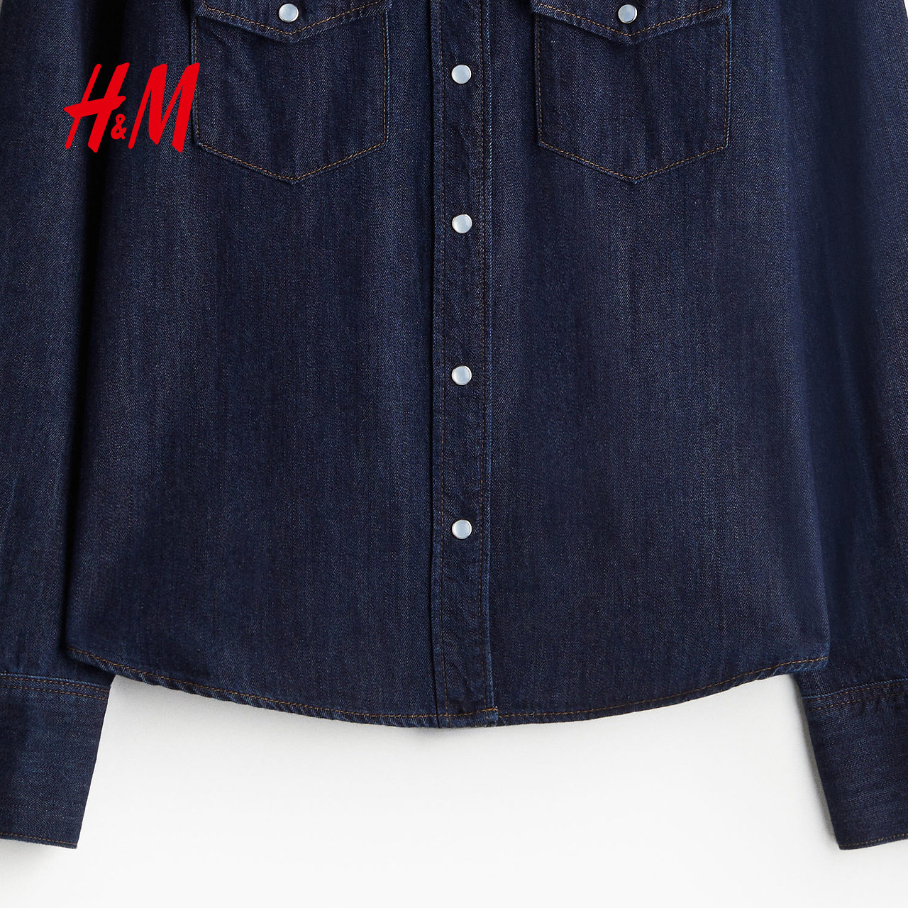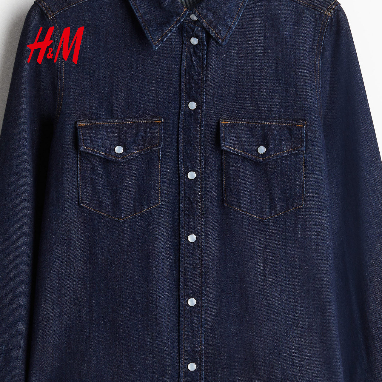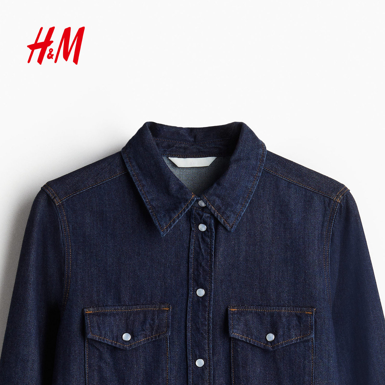 HM女装衬衫秋季女士休闲时尚潮流复古牛仔衬衫1243135