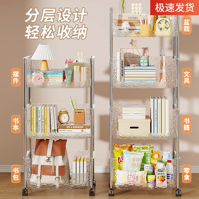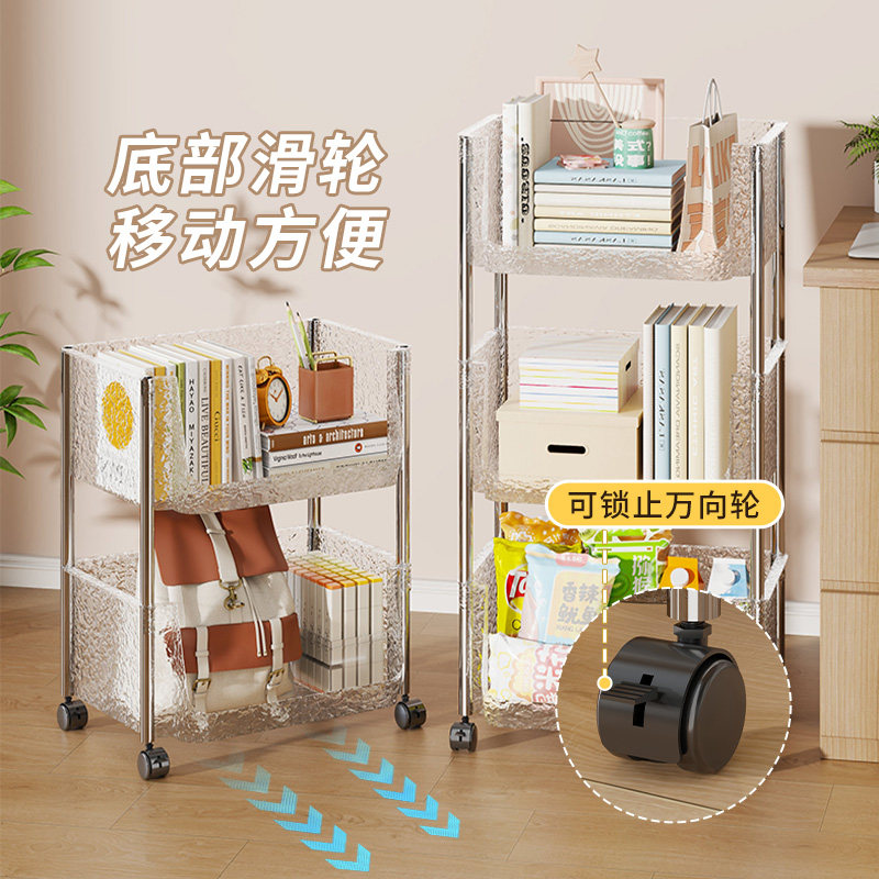 桌下书架宿舍书桌收纳置物架学习桌边落地可移动小推车大容量书柜