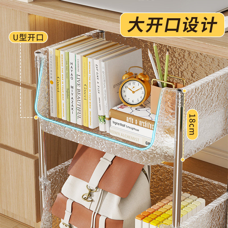 书包置物架学生桌下移动书架工位滑轮小推车办公室桌面书本收纳盒