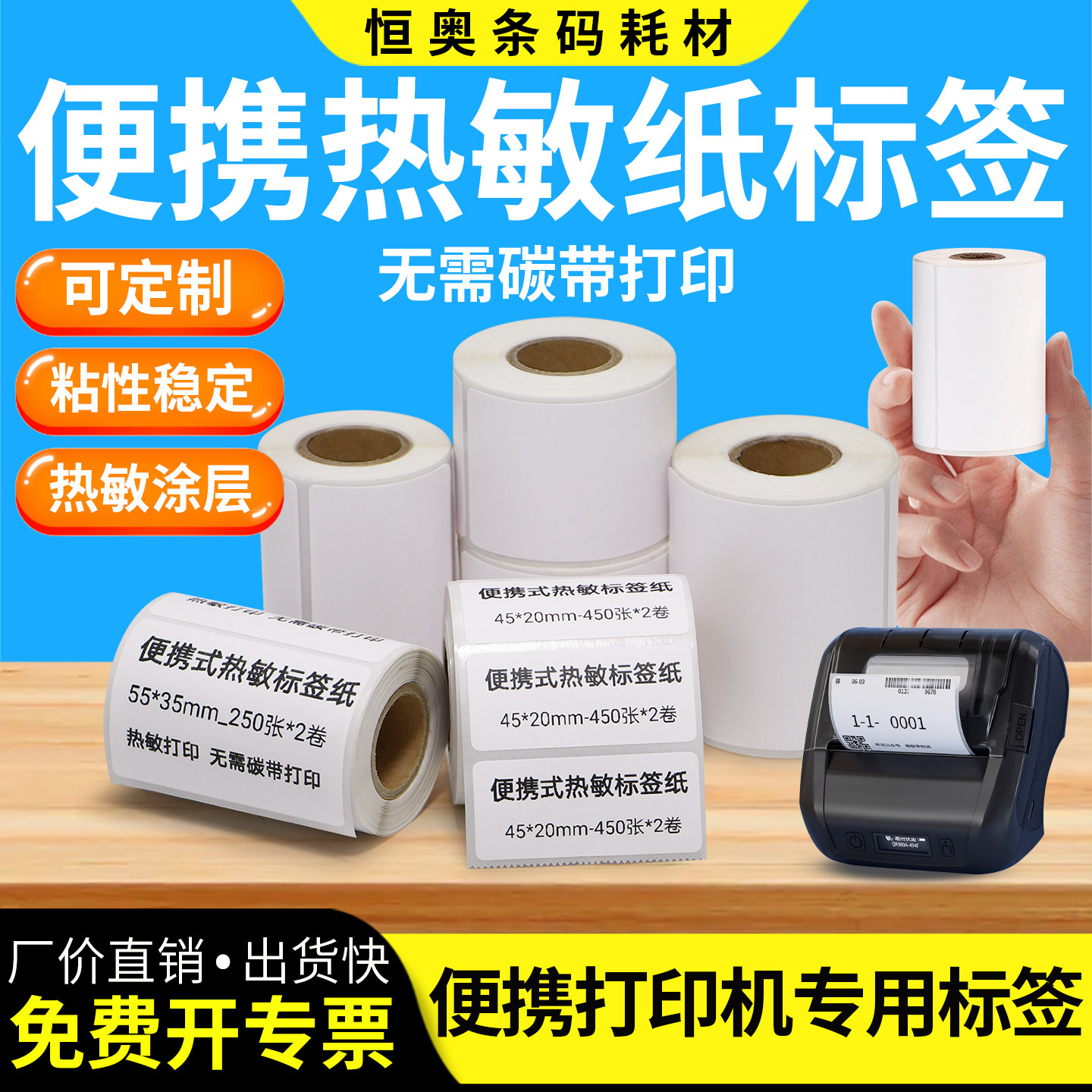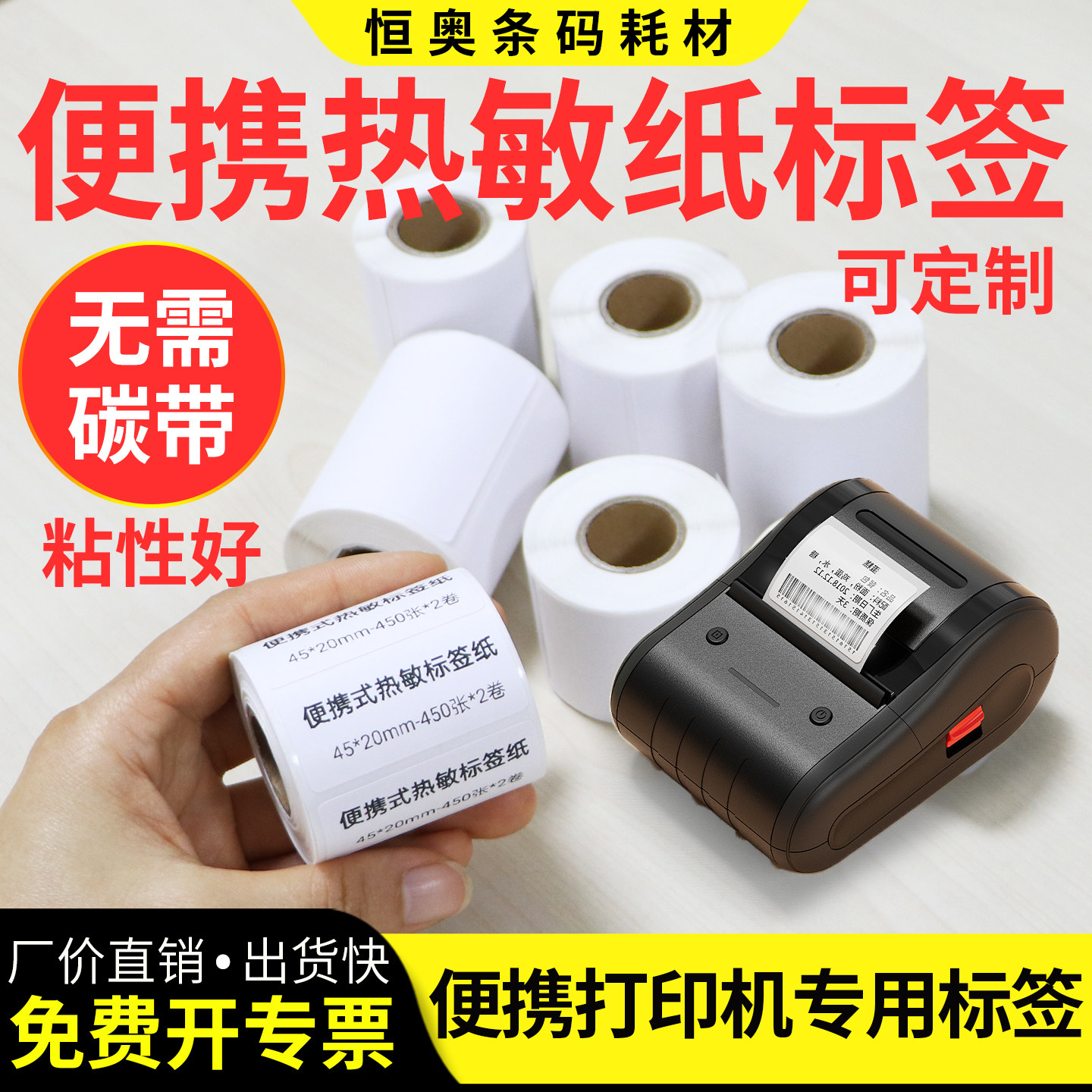 小卷便携式热敏标签纸不干胶定做印刷空白小卷芯条码打印机卷心标价纸汉印商品价格贴纸定制成卷菜鸟驿站