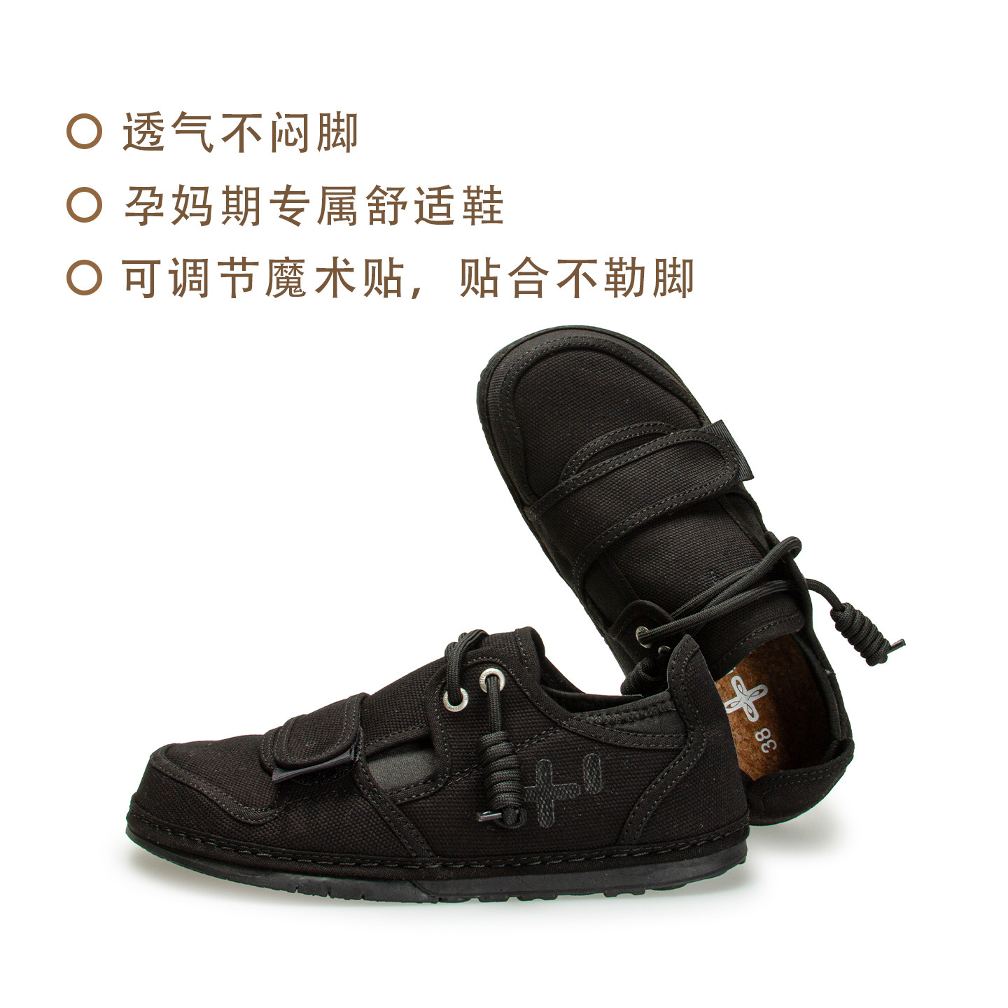 THEMULE黑色丑萌大头帆布鞋ins女一脚蹬孕妇鞋外穿运动透气防滑宽