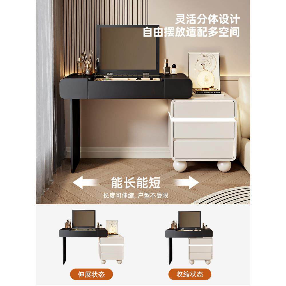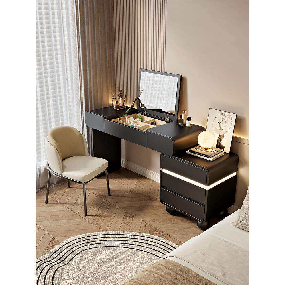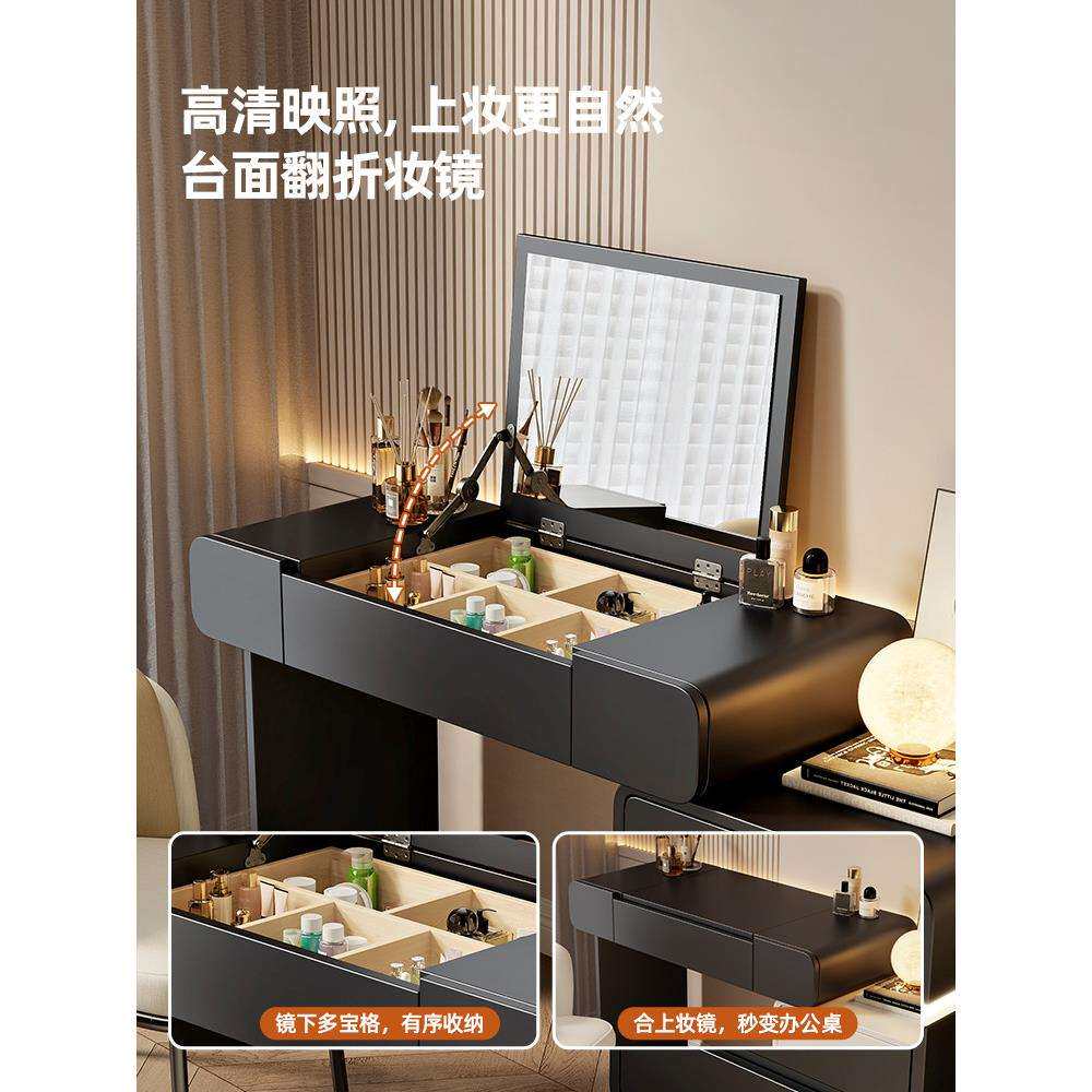 2025新款梳妆台卧室简约现代翻盖镜子可隐藏实木化妆桌斗柜一体