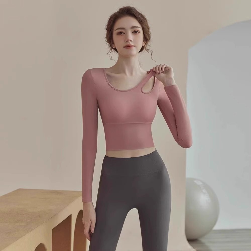 VfU 带胸垫瑜伽长袖女免穿内衣速干T恤跑步健身服上衣修身秋冬