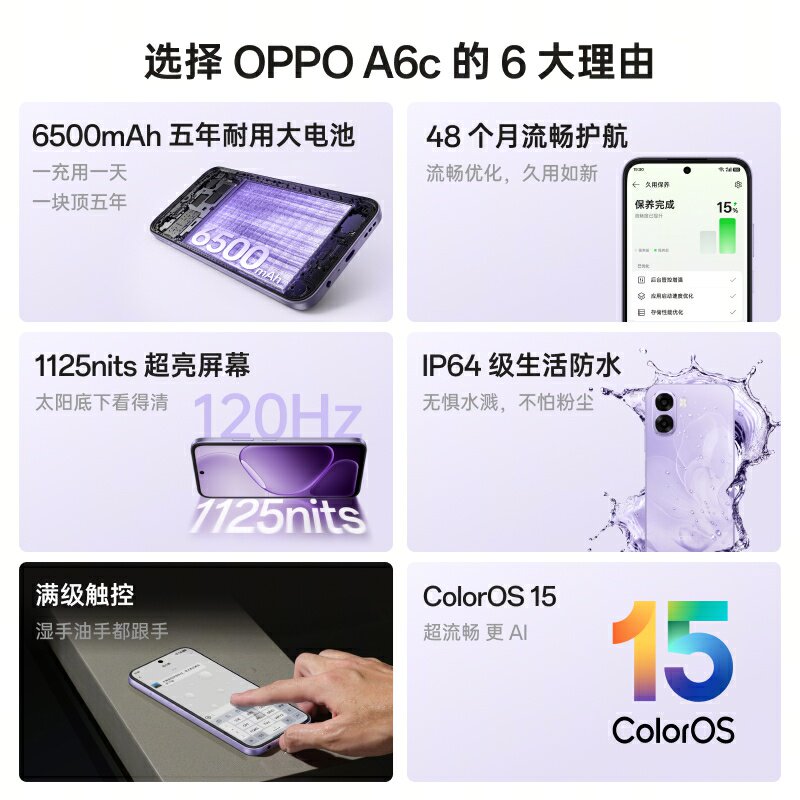 【新品上市】OPPO A6c oppo官方旗舰店 4G手机官网正品2026新款智能手机学生老人大电池 oppo手机 a6c