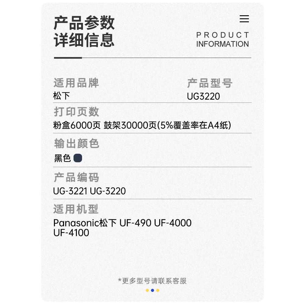 适用UG-3220松下粉盒UF-4000碳粉4100墨粉盒490CN传真打印机墨盒