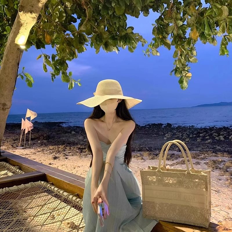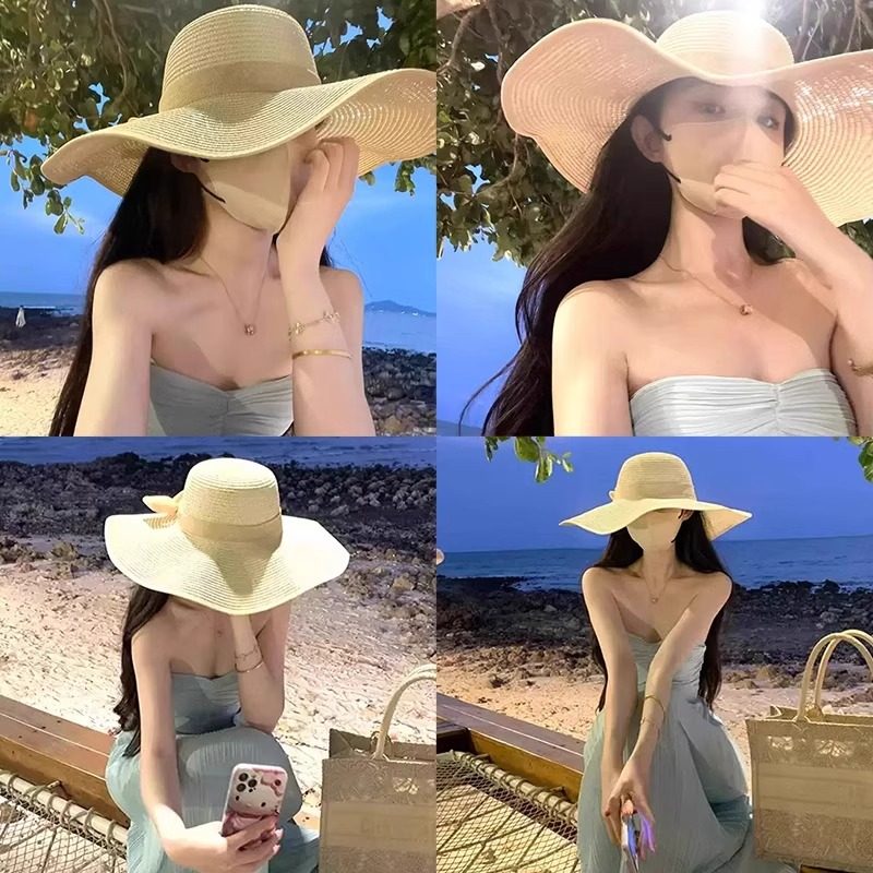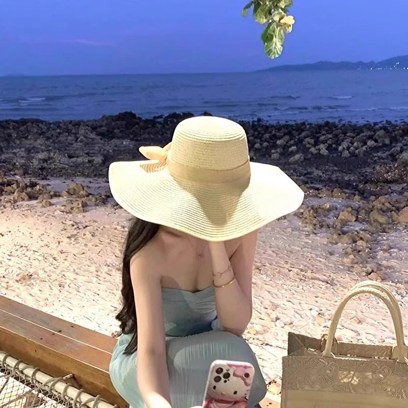 大帽檐草帽女法式2025新款海边沙滩度假防晒遮阳帽可折叠时尚帽子