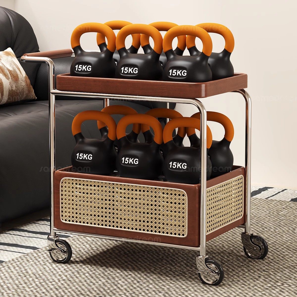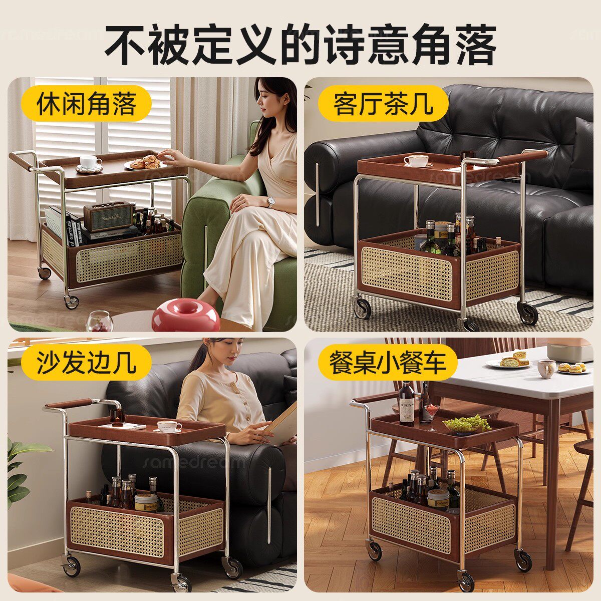 可移动边几小推车茶几客厅家用沙发边柜中古实木小桌子置物架零食