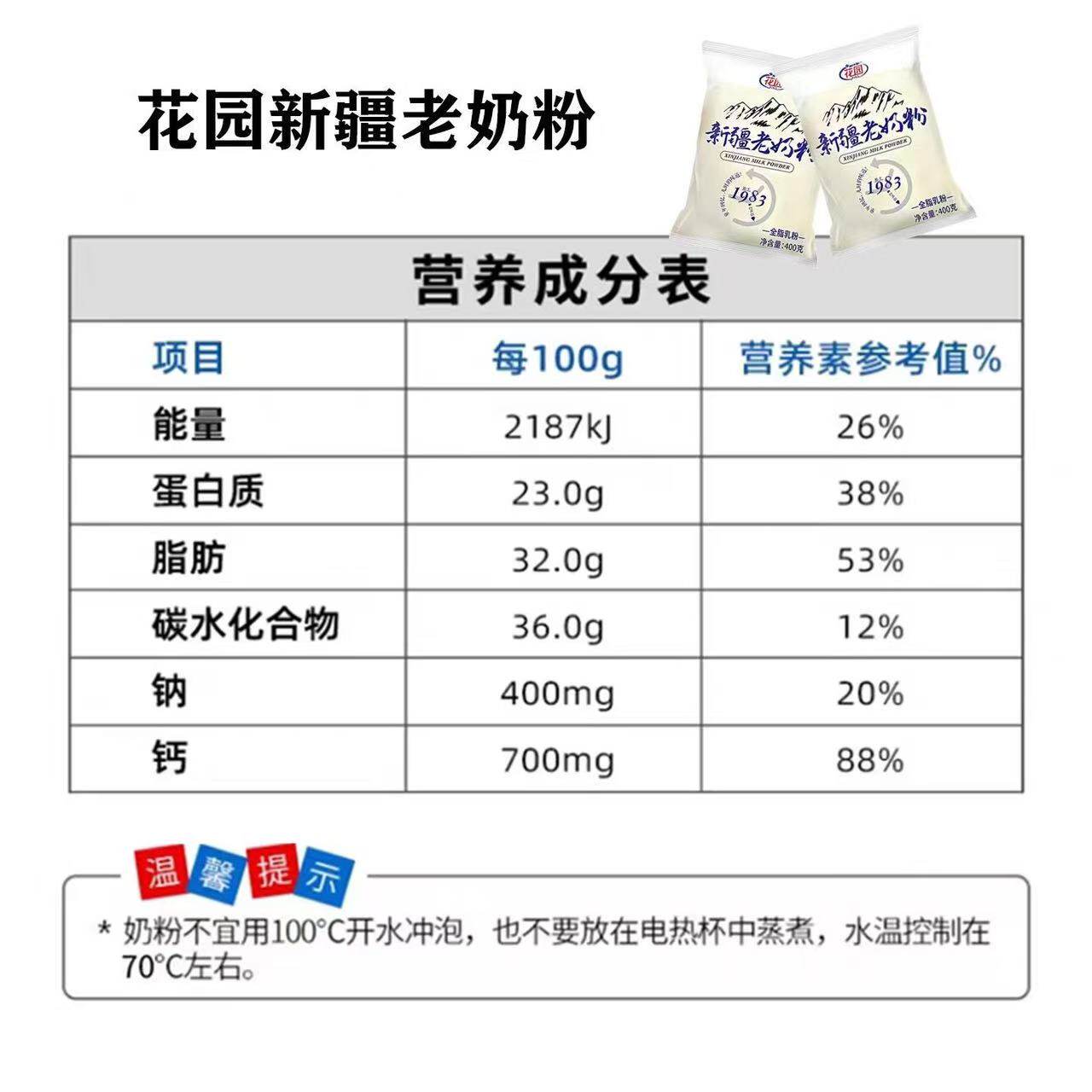 花园新疆老奶粉400g纯牛奶粉全脂乳粉成人儿童学生营养早餐食品