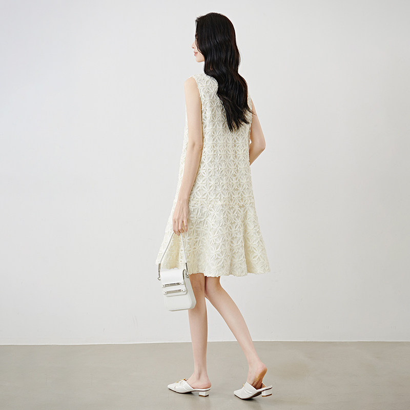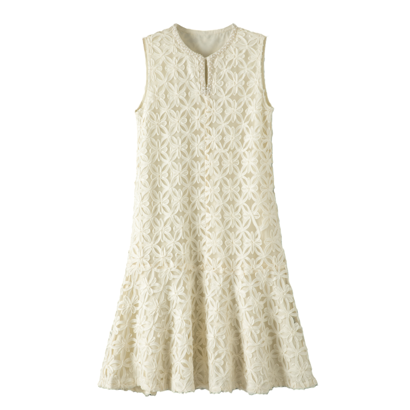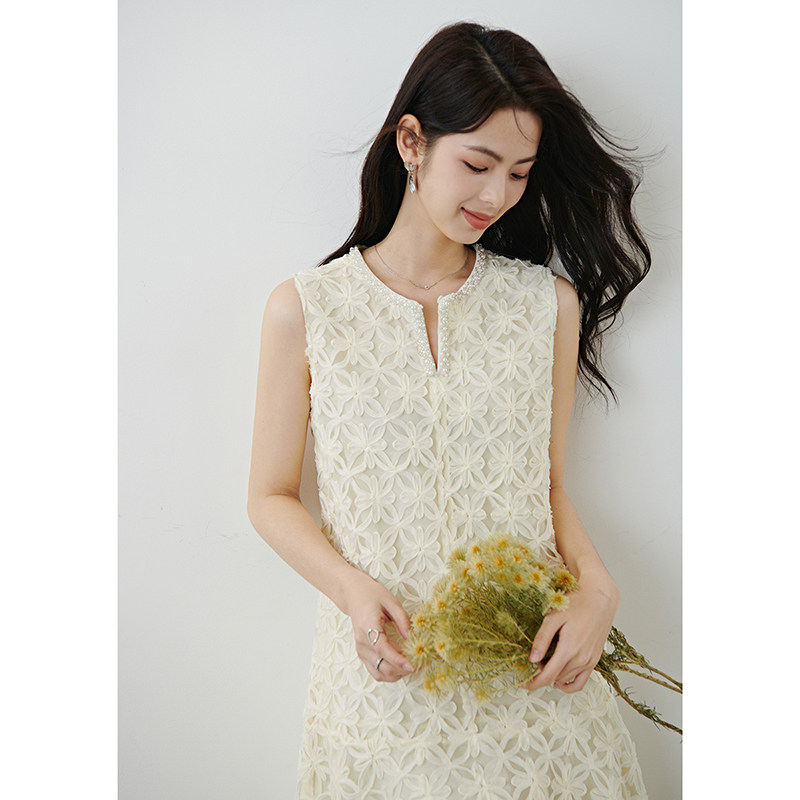 芝美日禾 重工手工镂空无袖气质连衣裙浪漫法式复古小个子