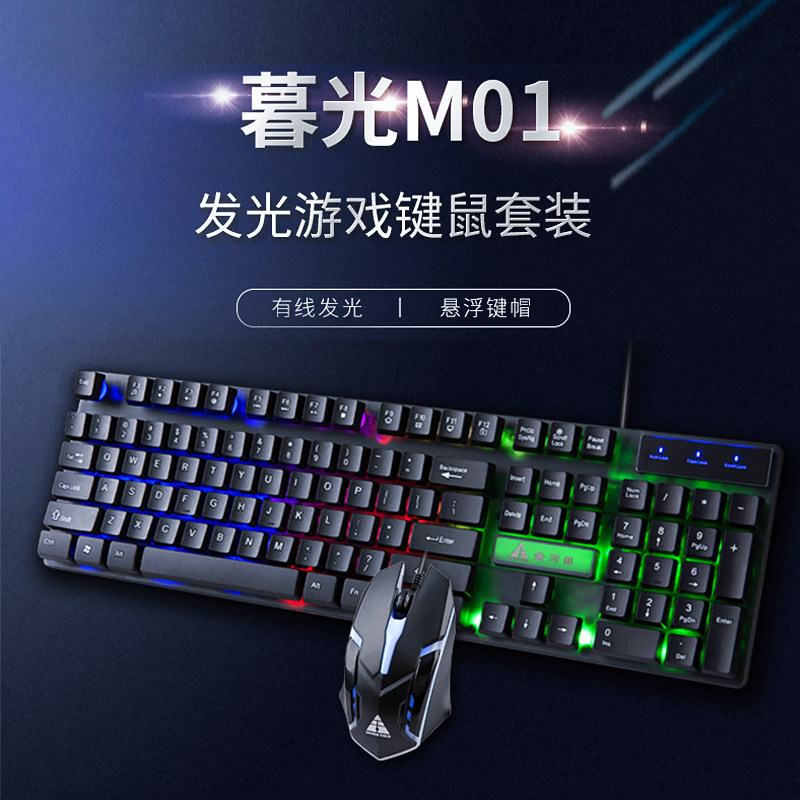 金河田暮光M01台式电脑USB有线键盘鼠标发光套件游戏机械手感