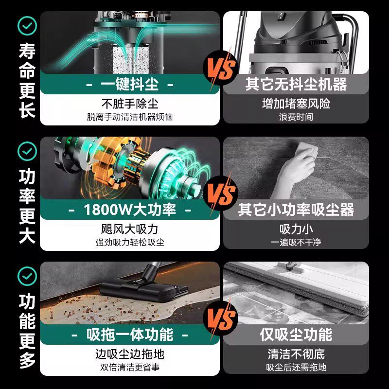 奥克斯吸尘器家用小型手持大功率工业开荒保洁猫毛拖把二合一体机