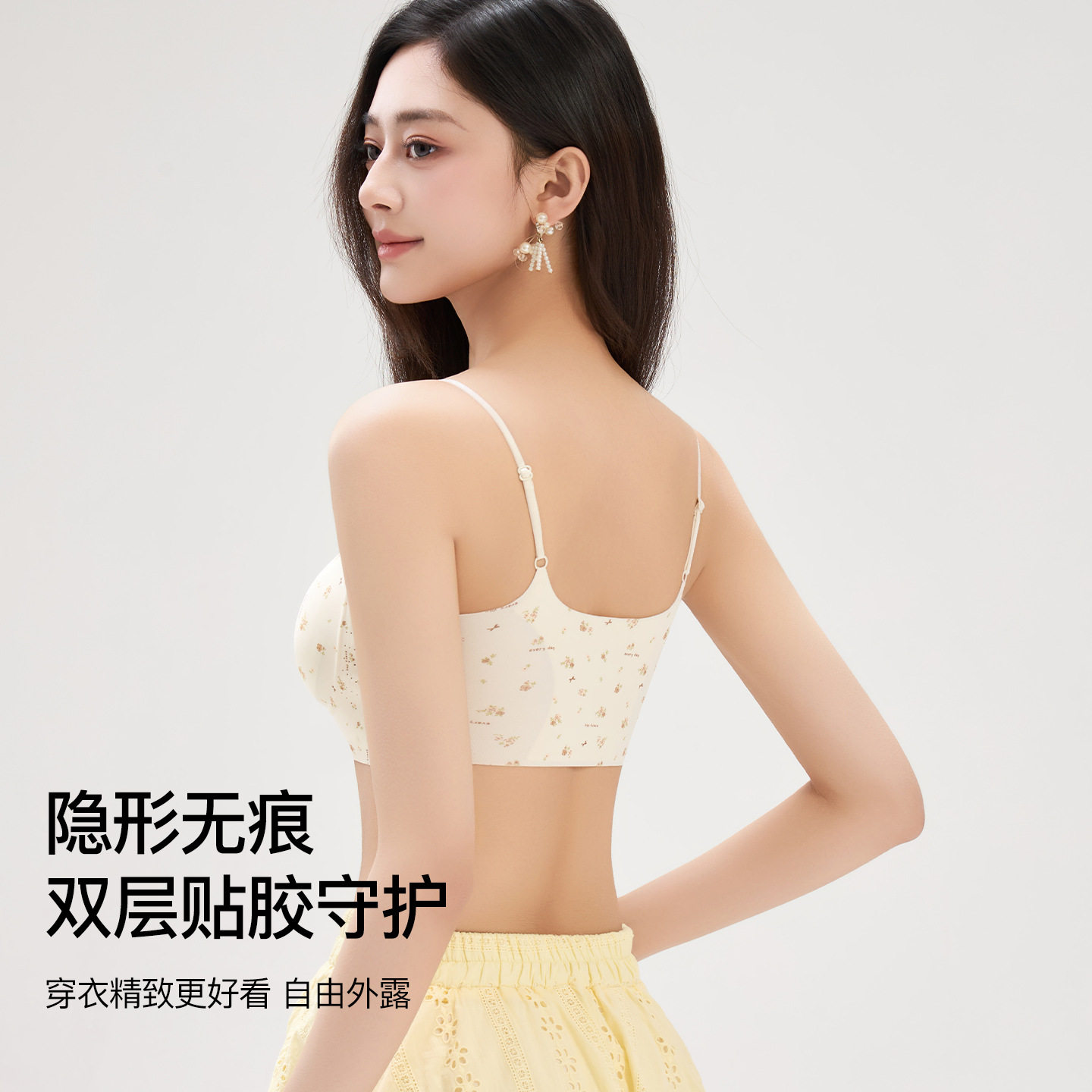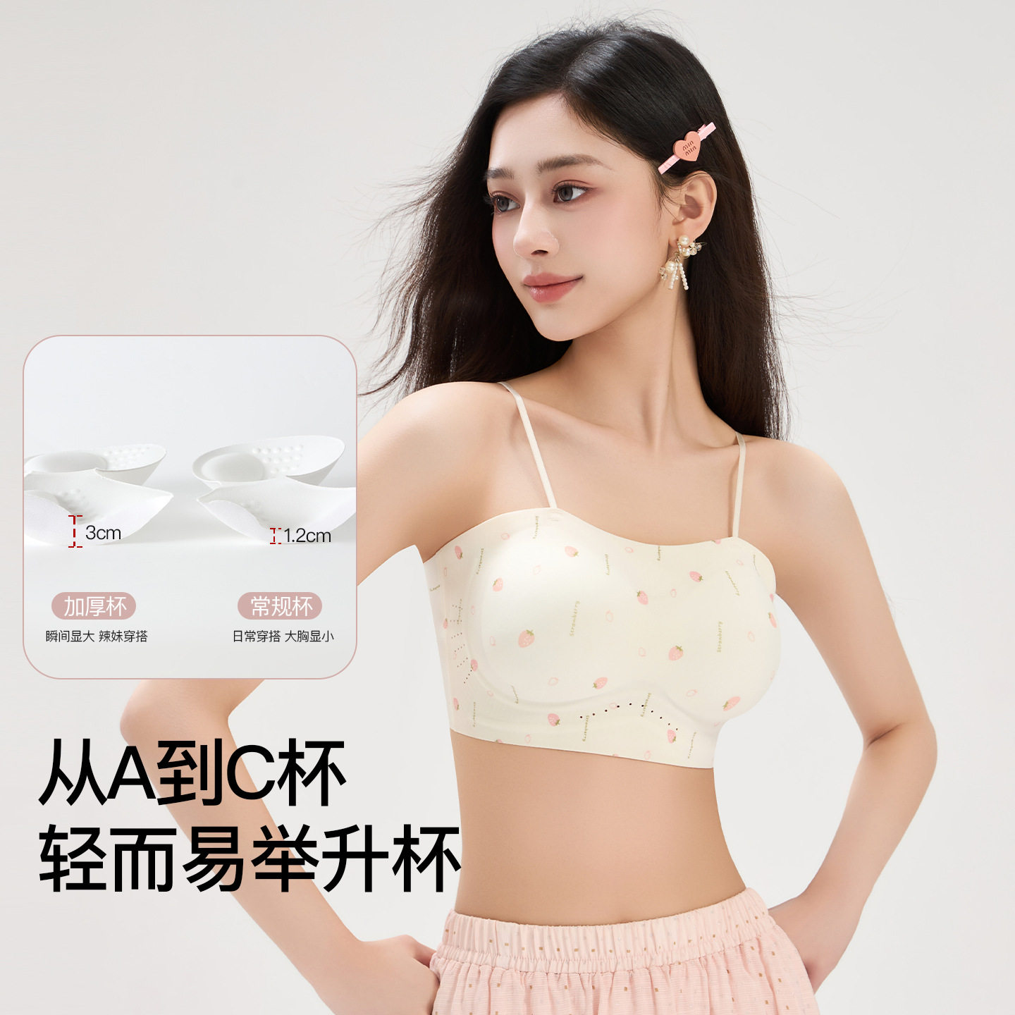 少女小碎花小胸显大春夏一体式固定杯无痕吊带裹胸抹胸无钢圈内衣
