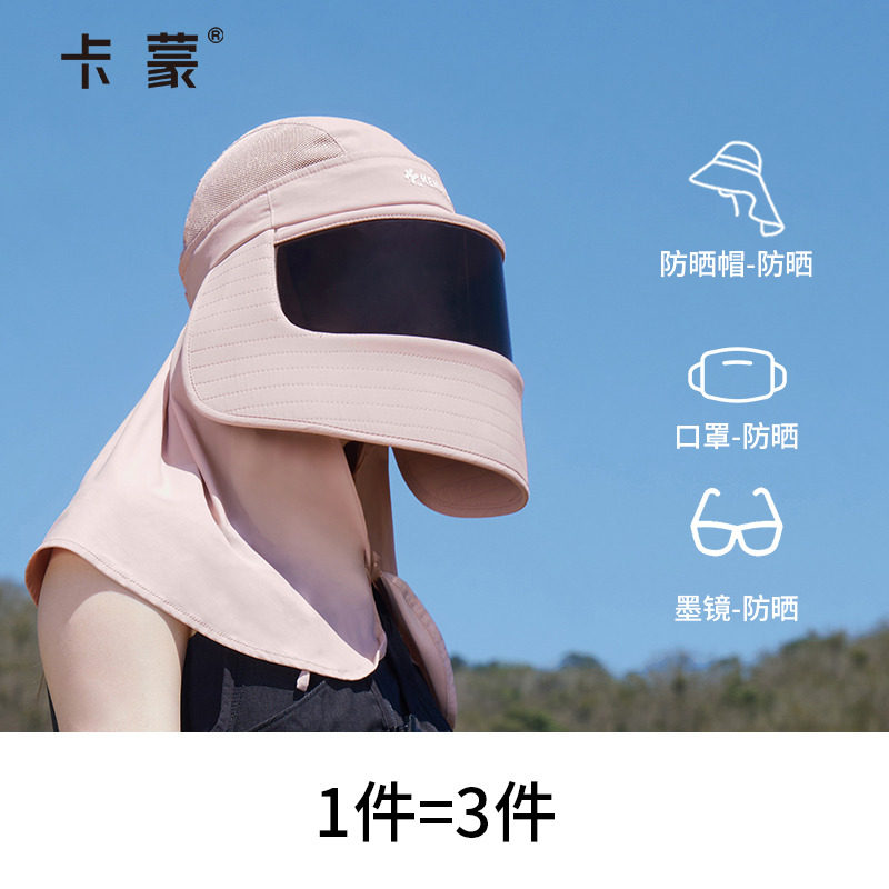 卡蒙大帽檐护颈医美防晒帽一体面罩遮全脸防紫外线速干透气遮阳帽