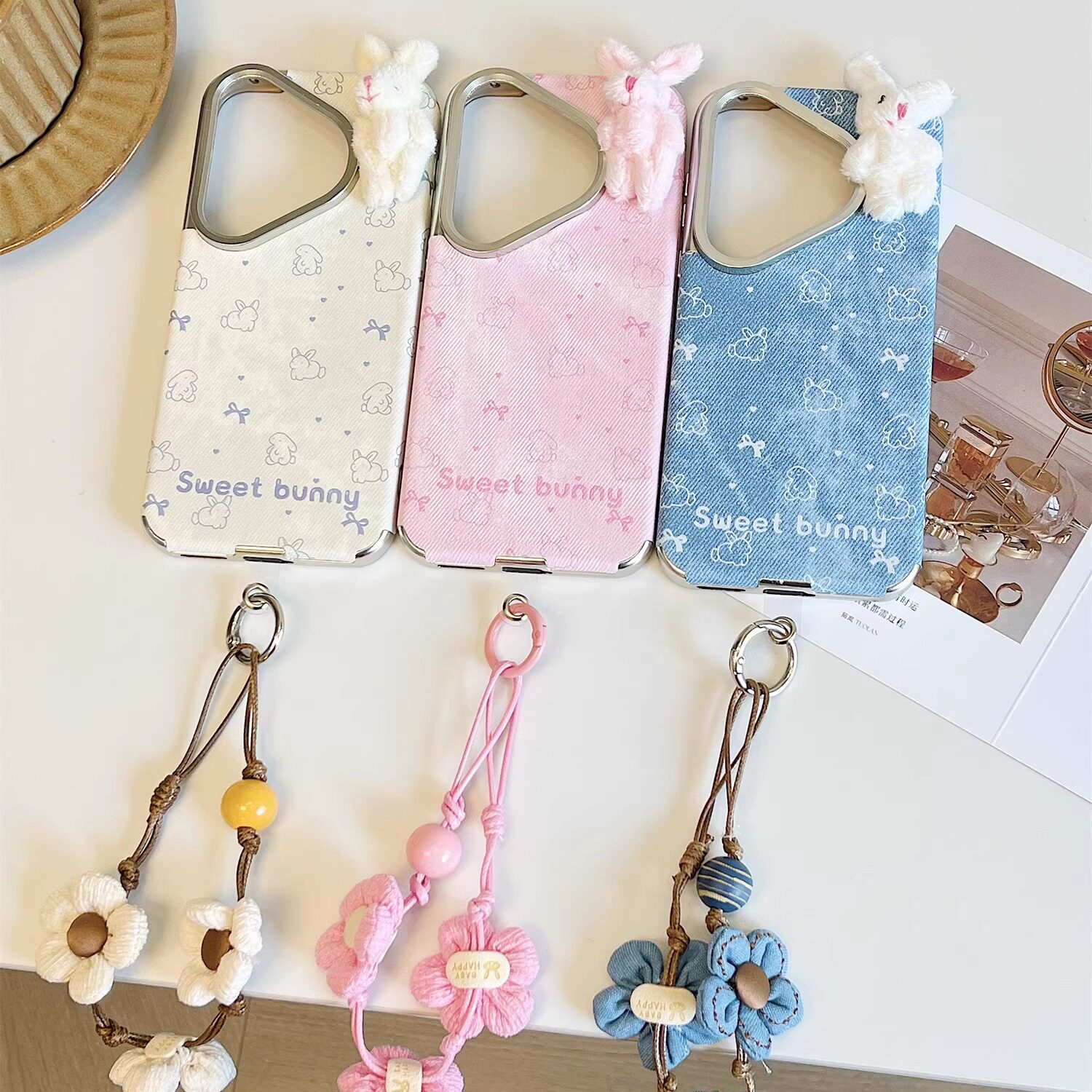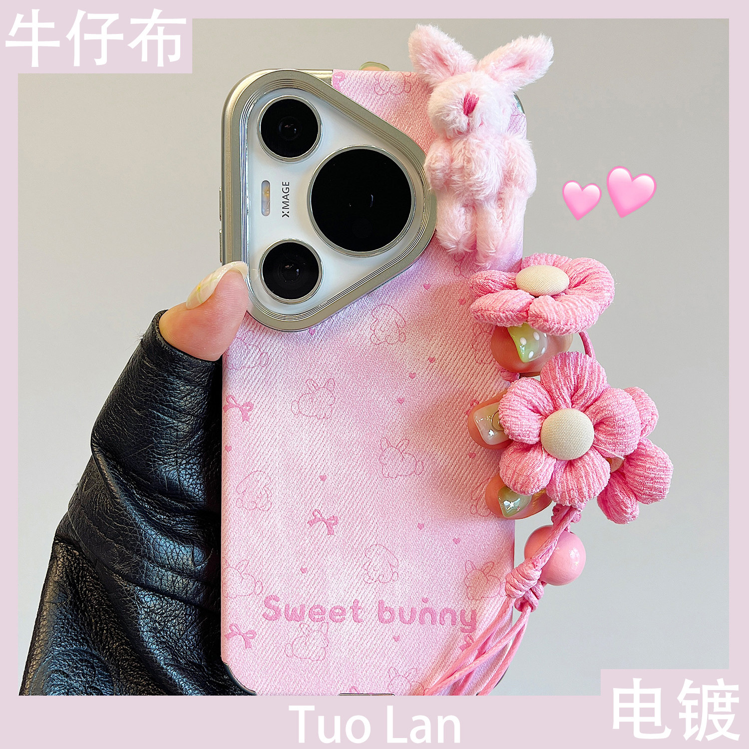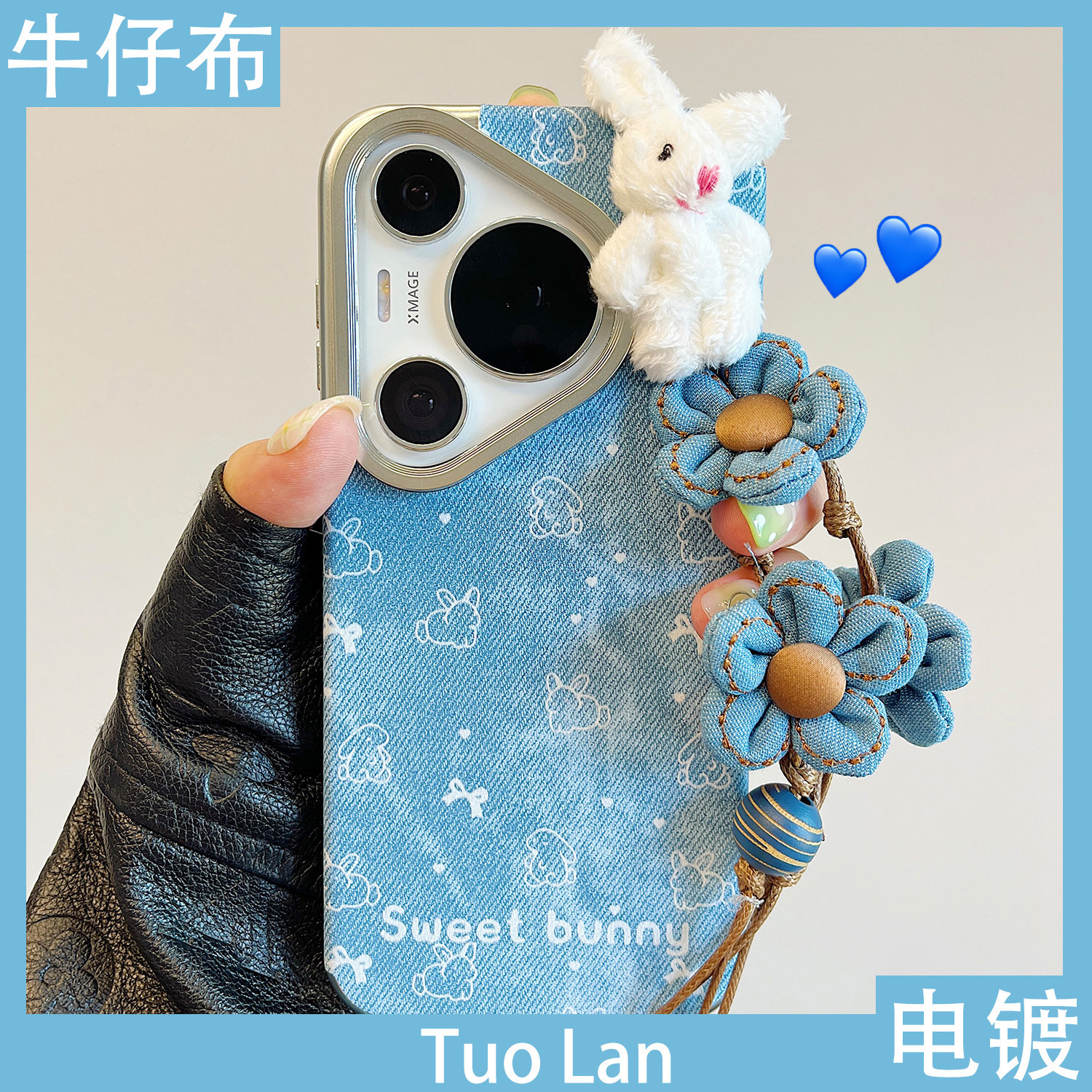 拓岚 适用华为pura70pro+新款手机壳Pura80pro秋冬牛仔布纹p60卡通立体毛绒兔子公仔mate80/70/60女40pro防摔