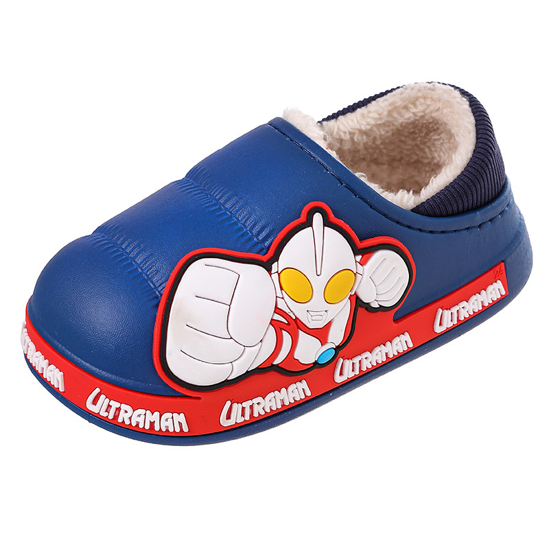 正品2025款儿童棉拖鞋包跟男童防水防滑加绒保暖棉拖冬毛绒红色