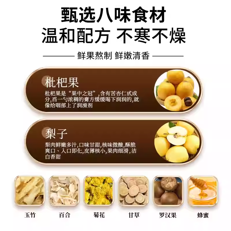 枇杷秋梨膏润肺止咳官方旗舰店咳嗽适用无添加嗓子甘草古法熬制