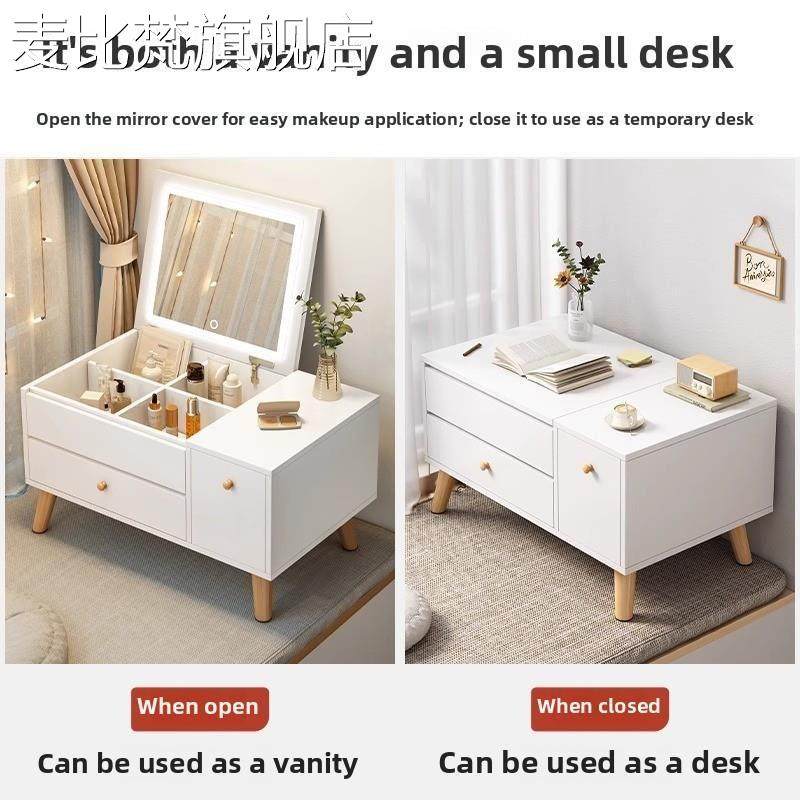 麦比梵凸窗梳妆台储物 柜 一体化卧室小公寓梳妆台现代简约流行风格梳妆台摆件饰品床笠拉车