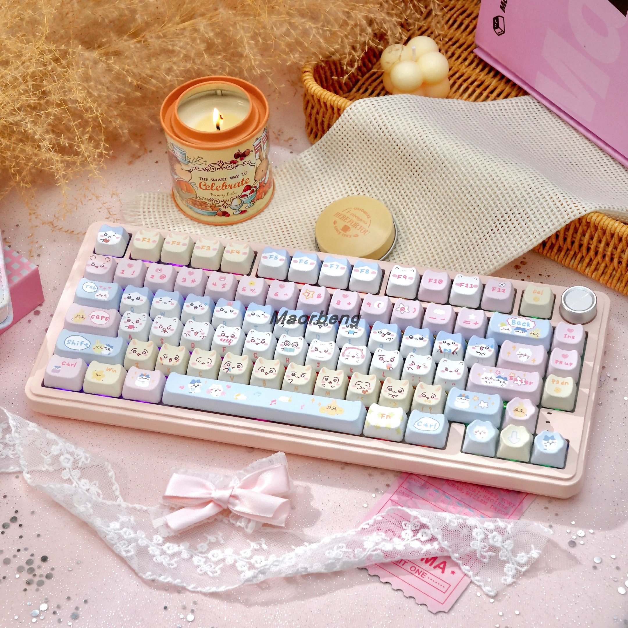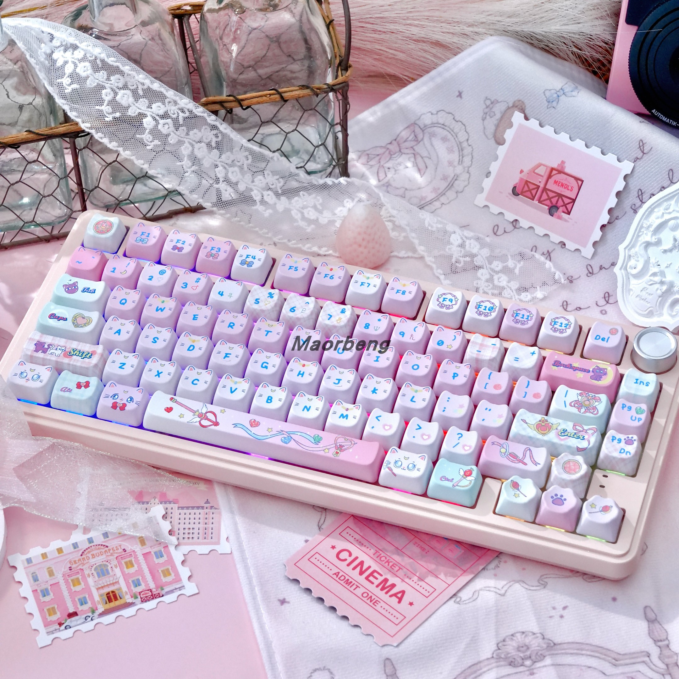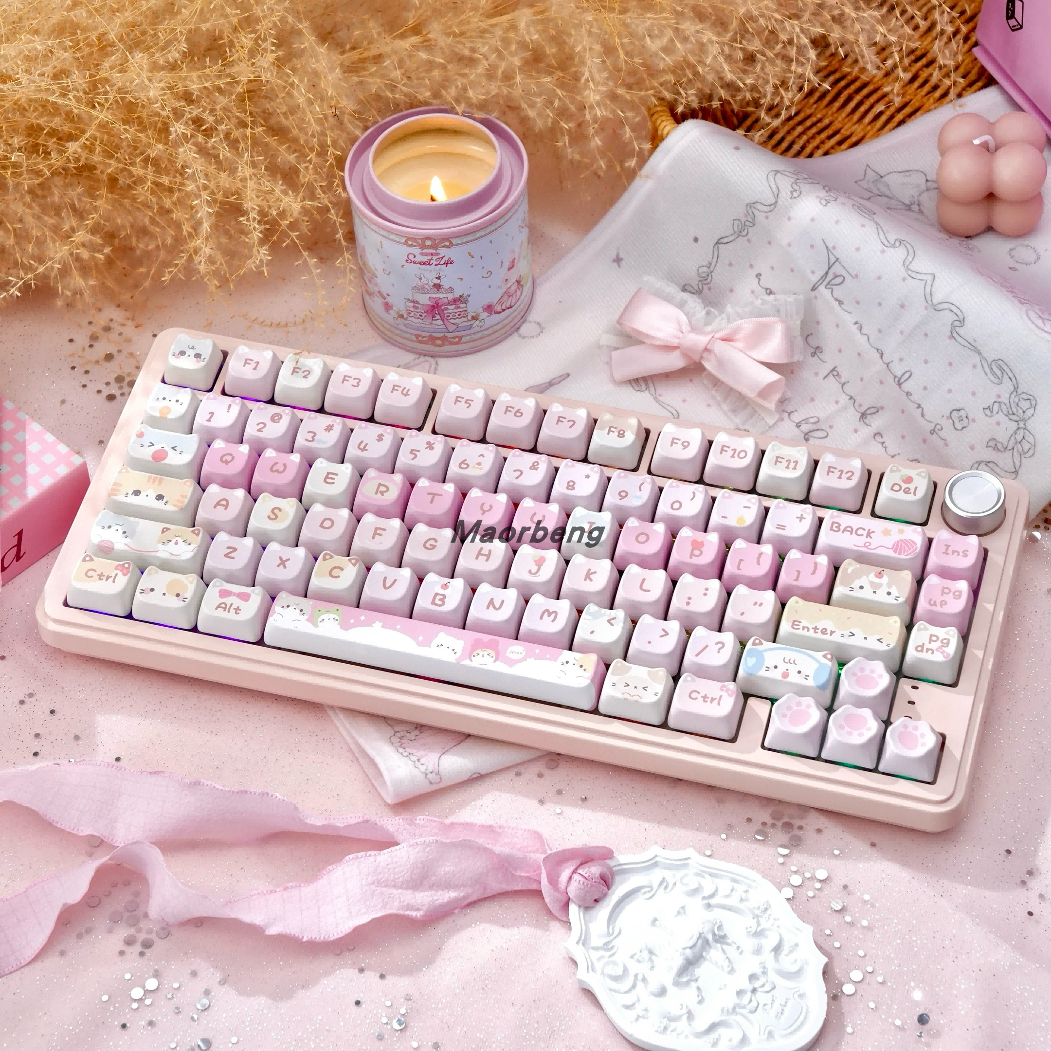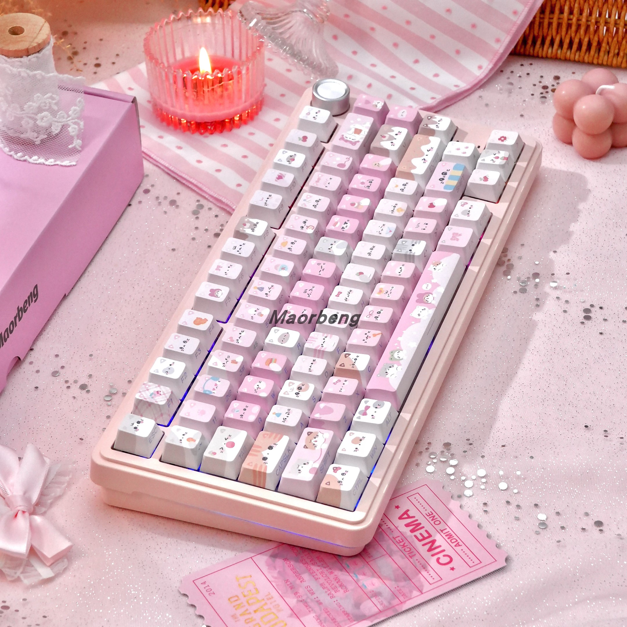 猫尔本M75粉色三模蓝牙有线2.4G无线8000毫安热拔插可爱机械键盘