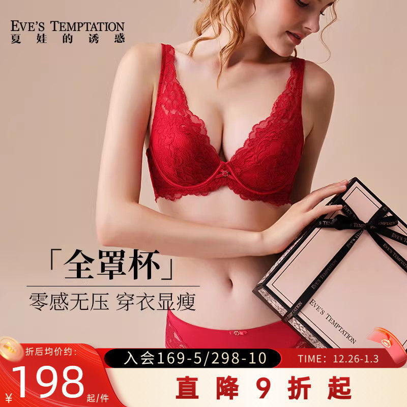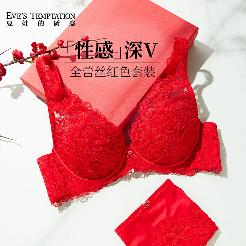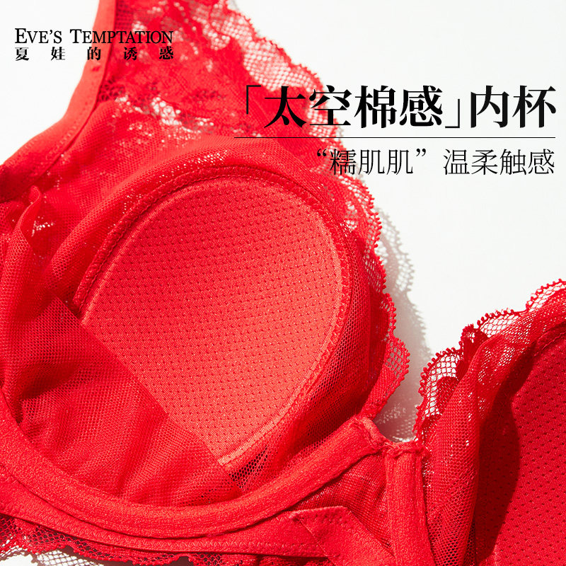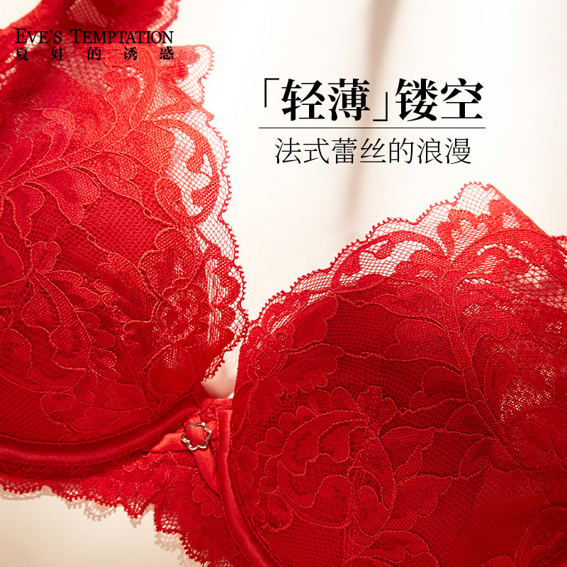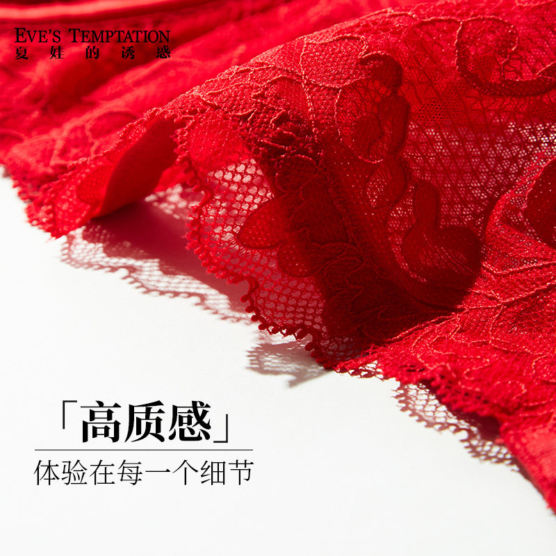 夏娃的诱惑大红色内衣内裤套装结婚新娘本命年女蕾丝薄款大胸显小