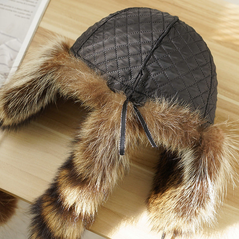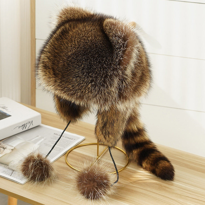 小浣熊护耳帽美洲貉子毛雷锋霸王帽尾巴冬季保暖男女儿童皮草帽子