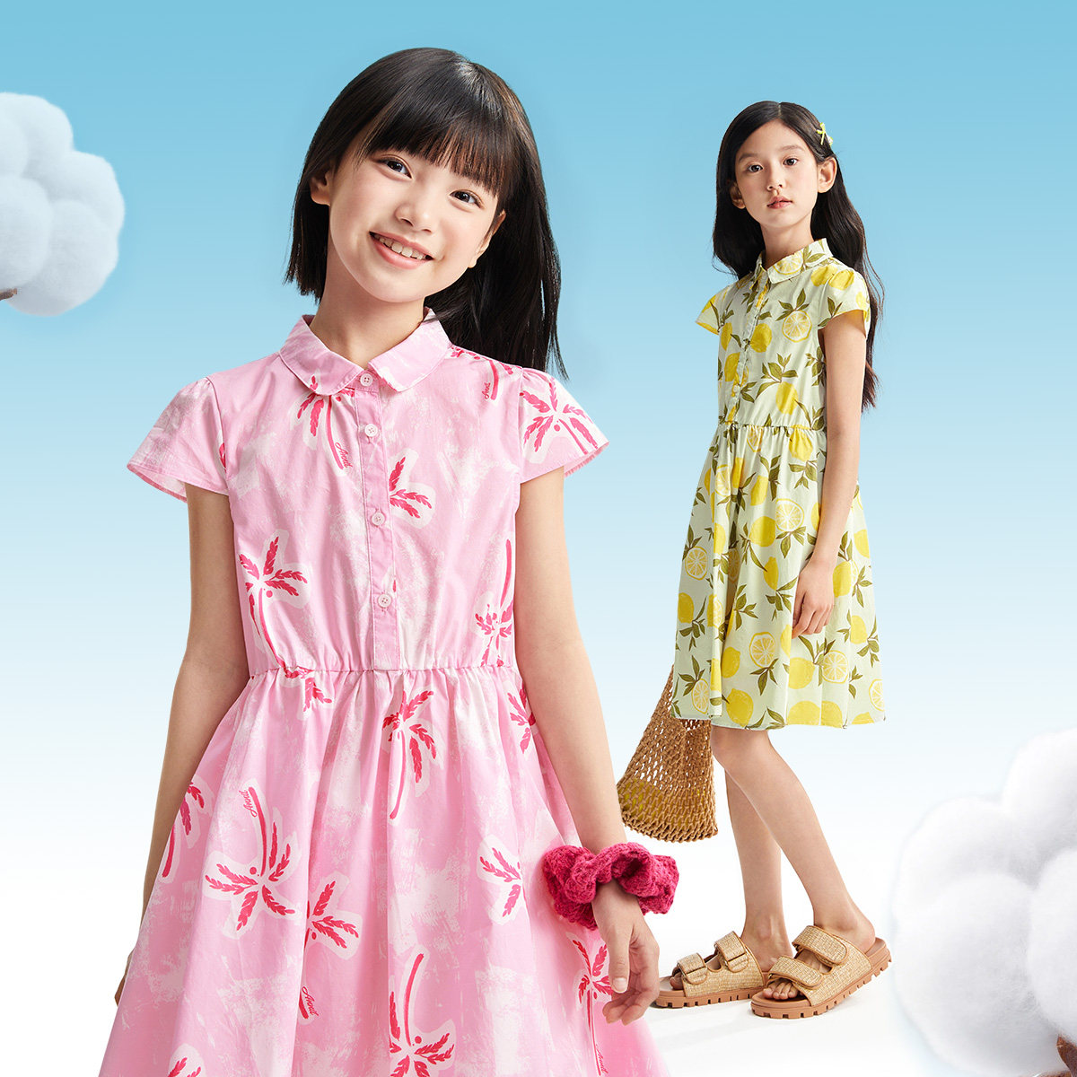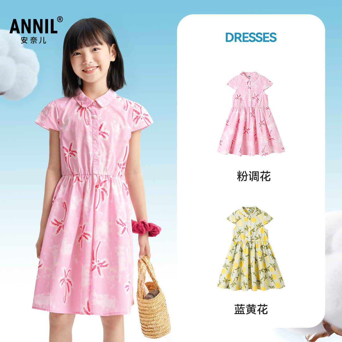 安奈儿童装女童短袖连衣裙2025夏新款清新纯棉印花甜美碎花裙子