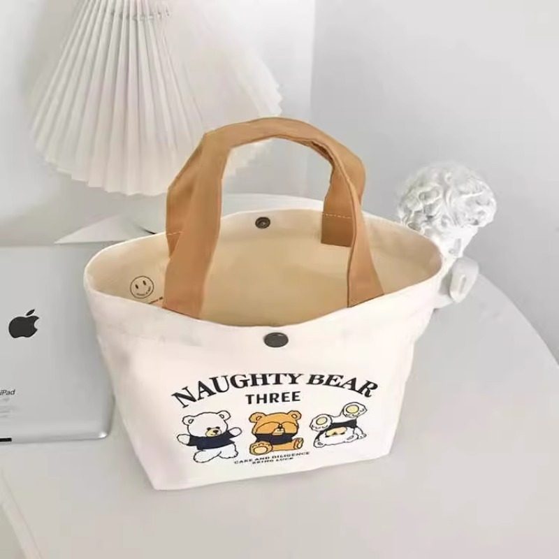 新款小熊帆布包女士上班学生手提包手拎便当饭盒收纳礼品袋帆布袋